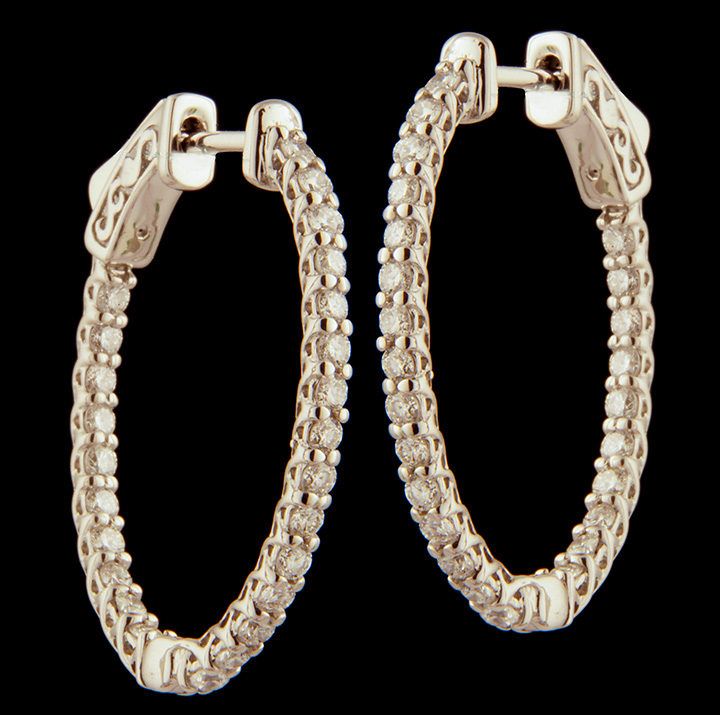Oval Diamond 1.50ctw Inside Out Hoop Earrings in 14K White Gold Stock# 8870