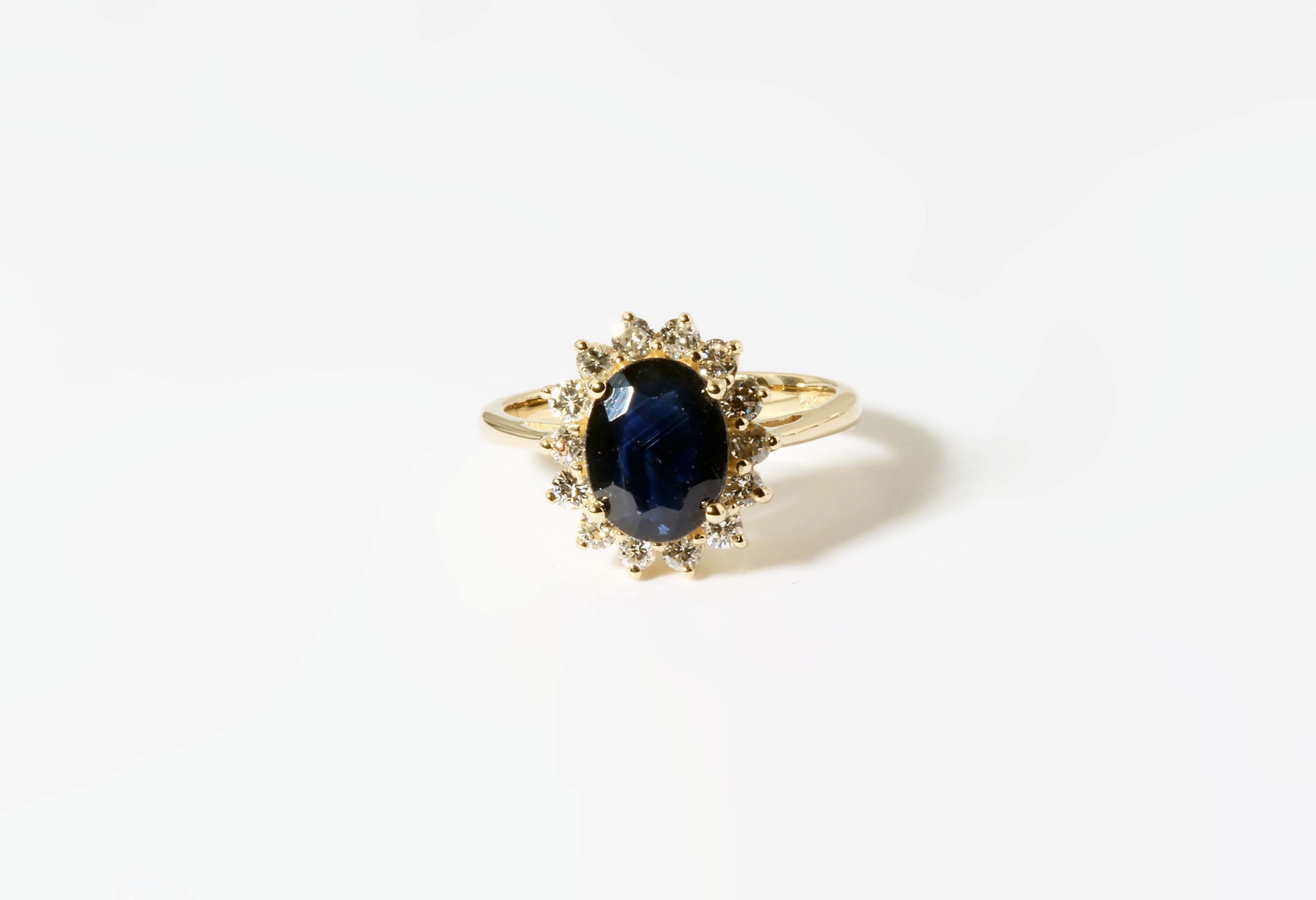 Sapphire and Diamond Halo Style Ring “Princess Dianna” style 2.38 carat 9 x 7MM Sapphire .46 TDW -Stock# 9736