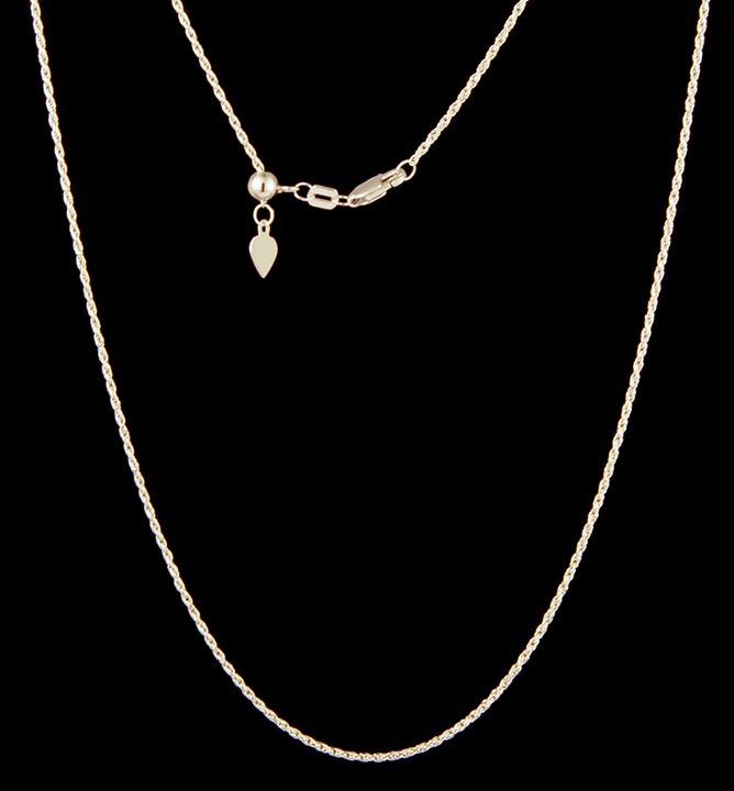 Adjustable Rope Chain Necklace in 14K White Gold – Stock# 8769