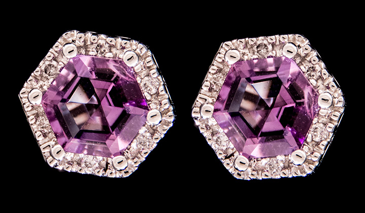 Amethyst 0.31ctw and Diamond 0.05ctw post Earrings in 14K White Gold – Stock# 8102