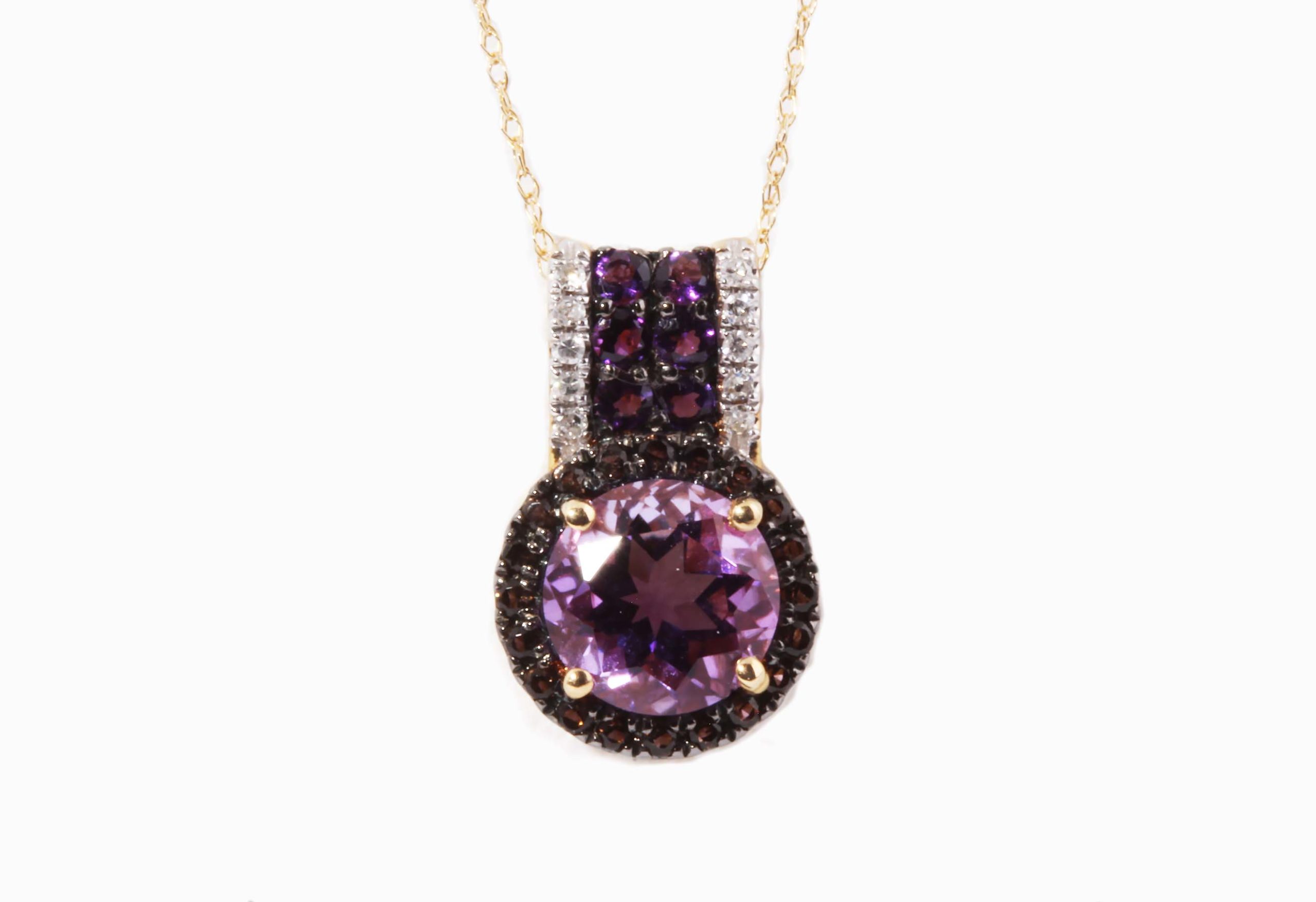 Amethyst 2.04ctw and Diamond 0.04ctw Pendant in 14K Yellow Gold