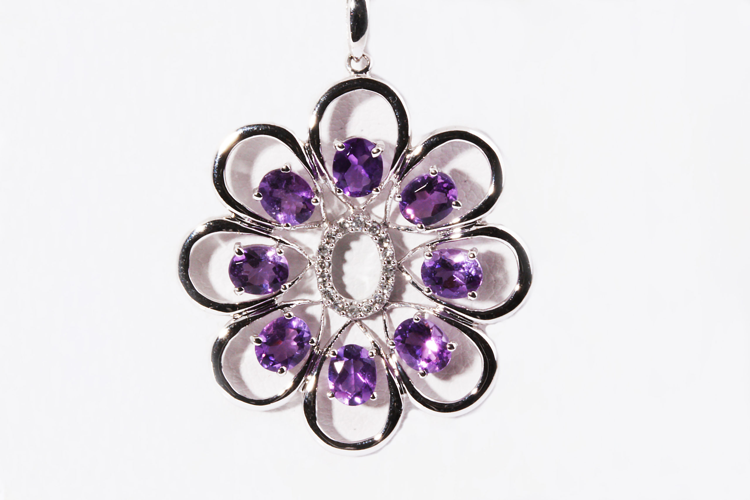 Amethyst and Diamond Pendant 14K White Gold .10TDW 1.76 TGW (Amethyst) – Stock# 6592