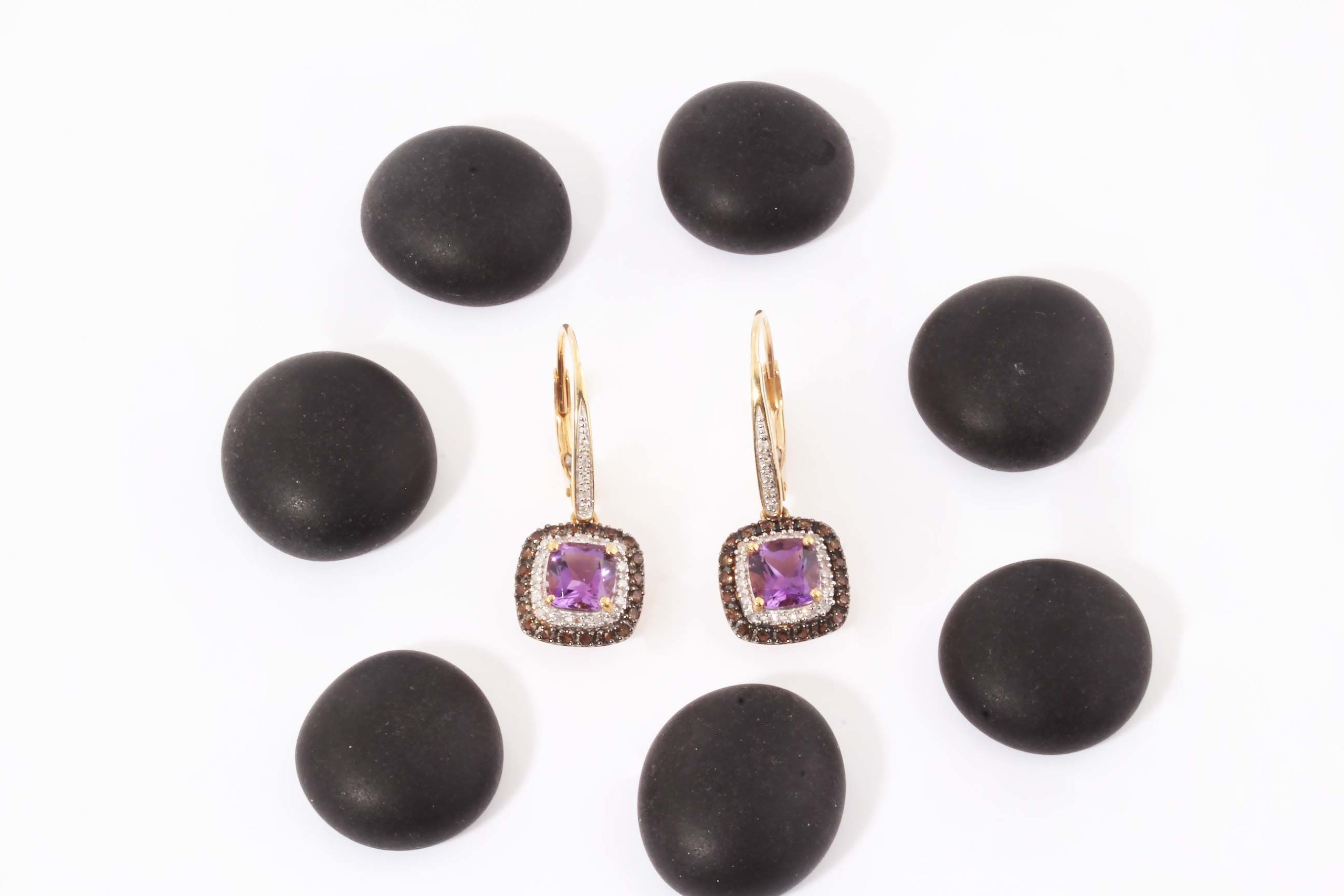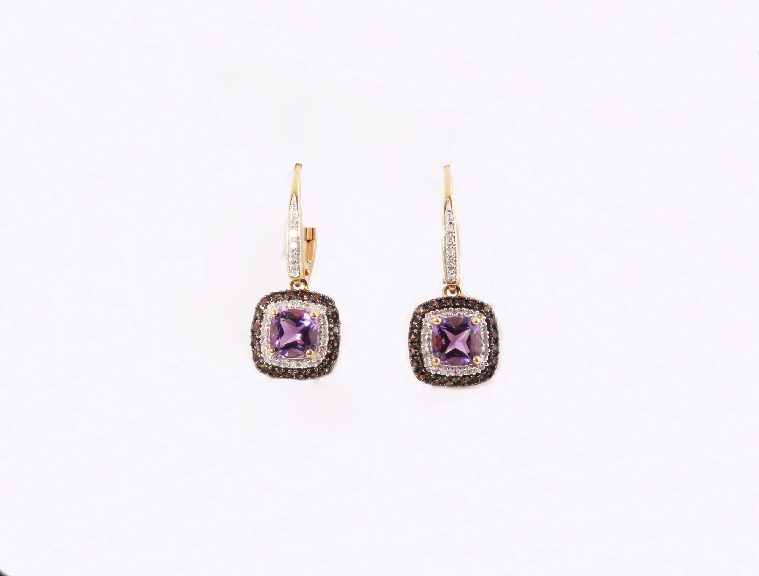 Amethyst and Diamond (0.17ctw) Dangle Earrings in 14K Yellow Gold – Stock# 9115