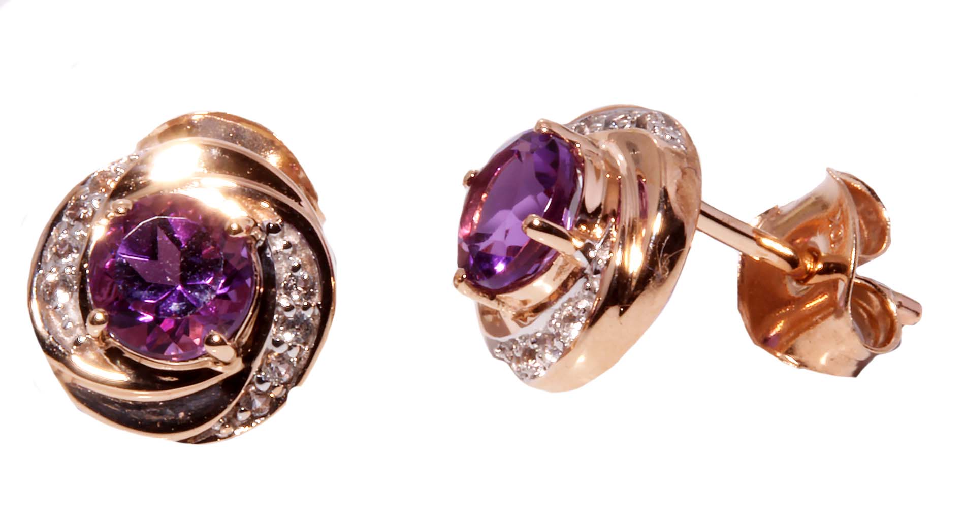 Amethyst and White Topaz Stud Earrings in 14K Rose Gold -Stock#10872