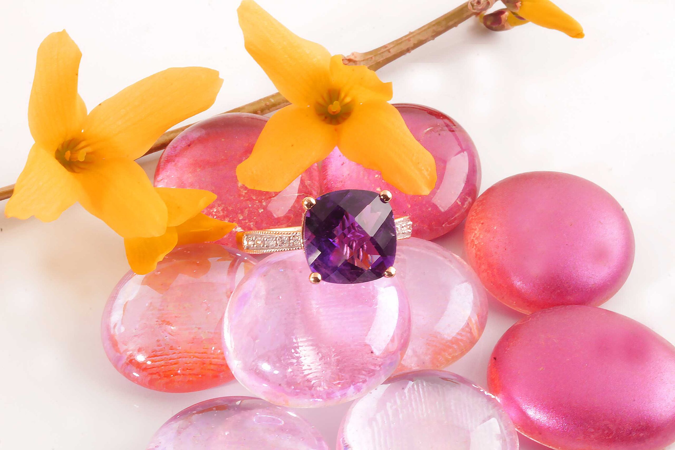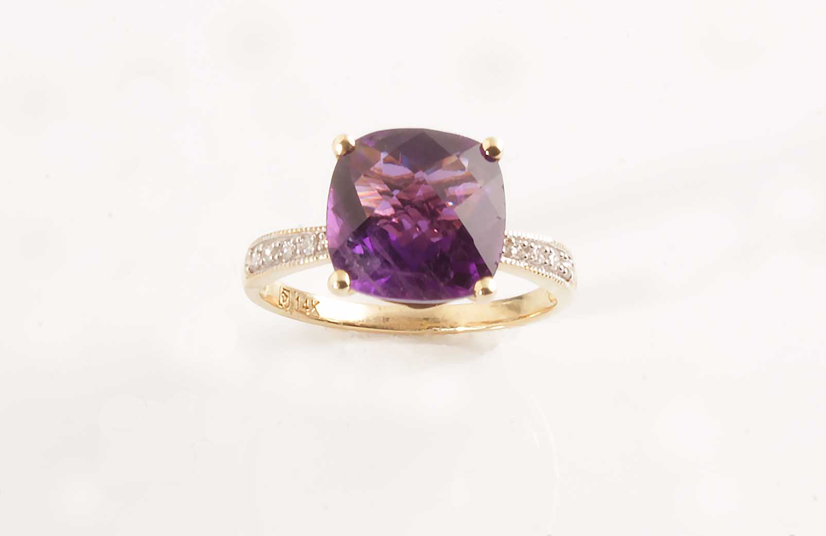 Amethyst & Diamond Ring 14KYG Checkerboard .04TDW #200-00026