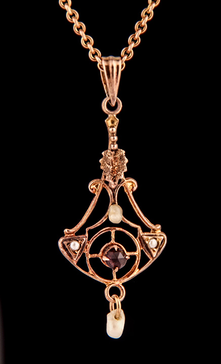 Antique Amethyst and Pearl Necklace in 10K Yellow Gold – Stock# 8292