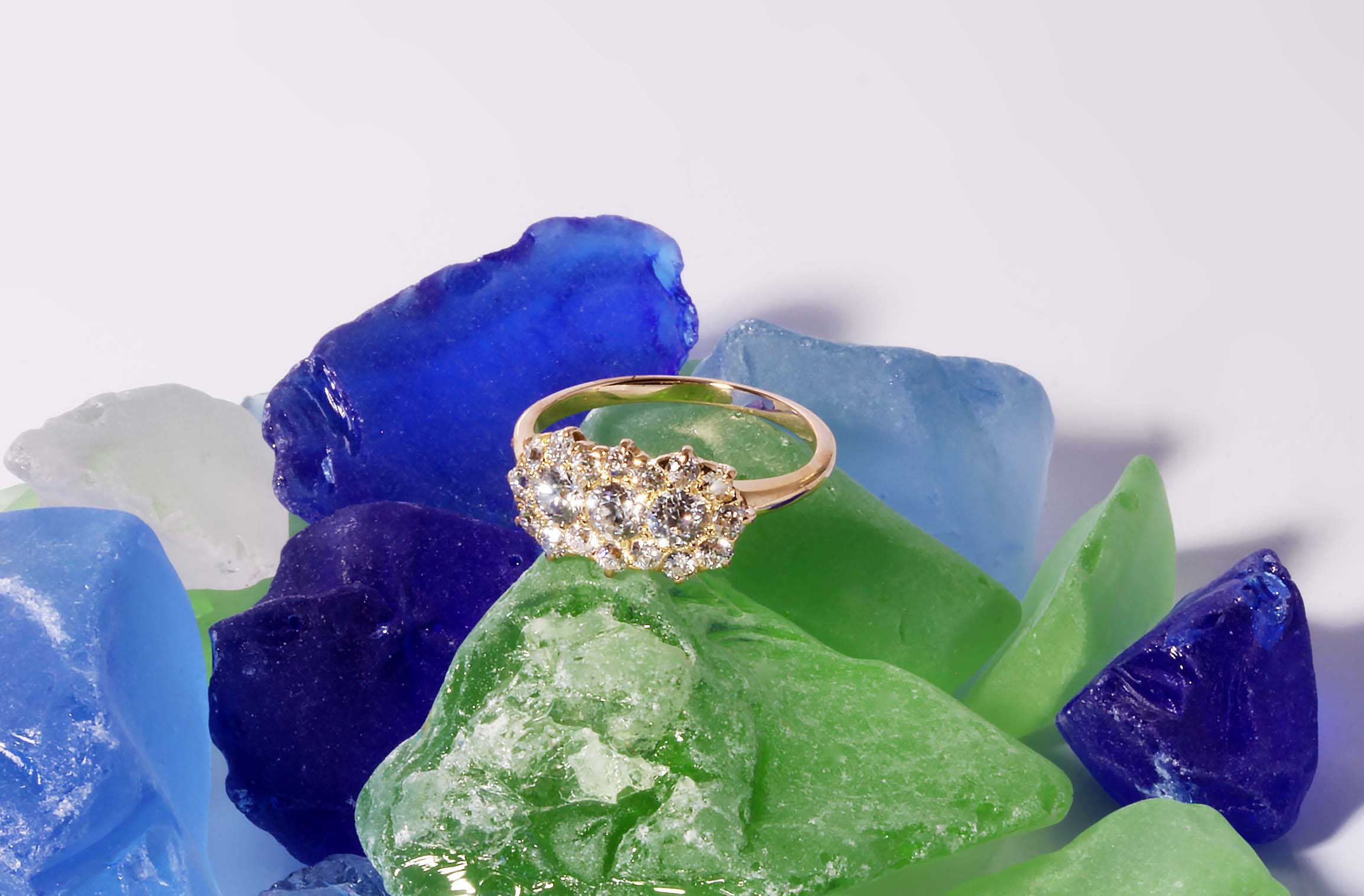 Antique Estate Three Diamond Halo Ring #10674