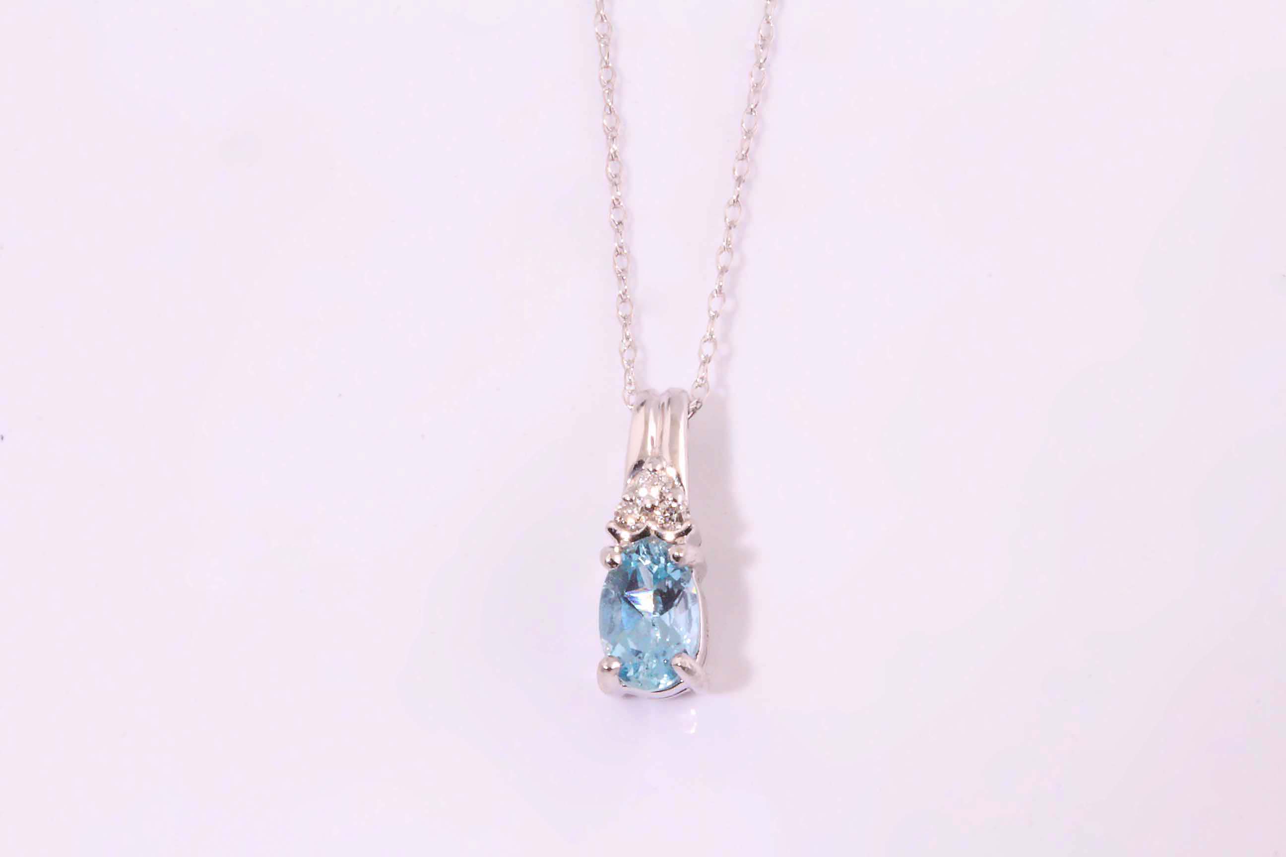 Aquamarine 6x4MM .0.04TDW PENDANT 14KWG