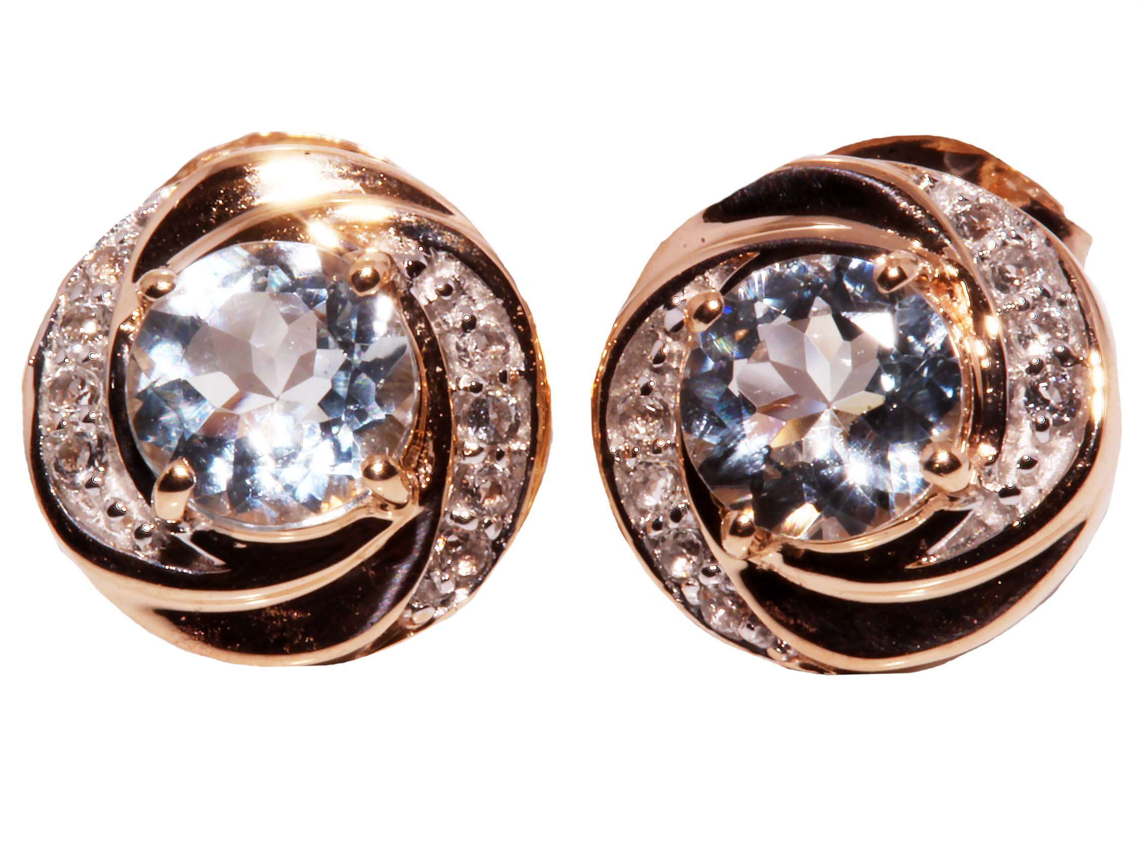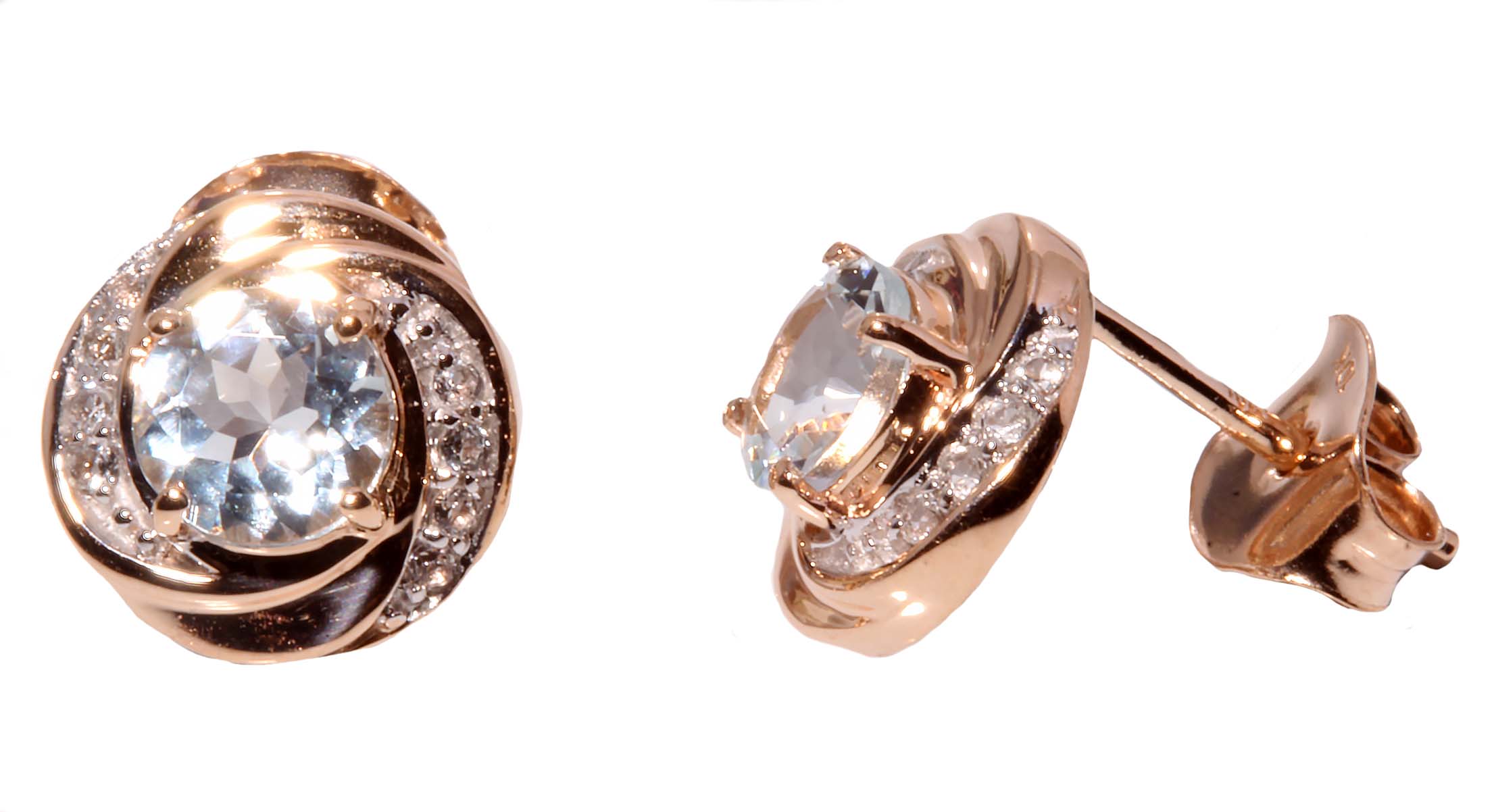 Aquamarine and White Topaz Stud Earrings in 14K Rose Gold -Stock#10873