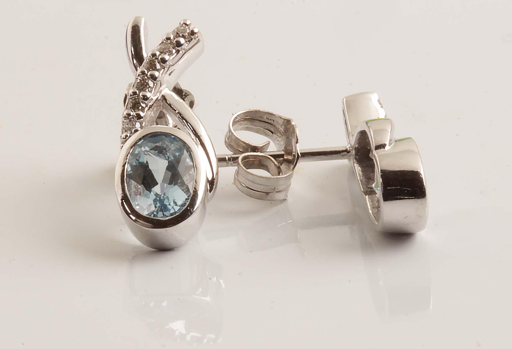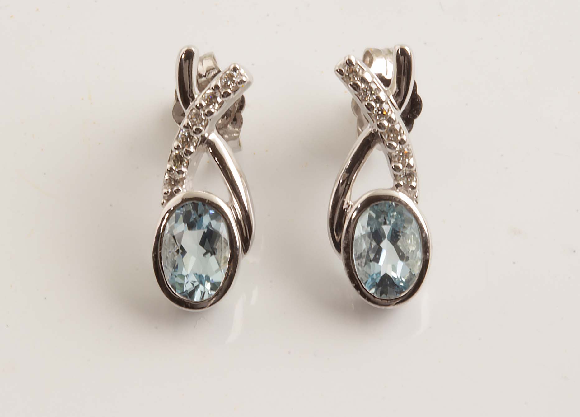 Aquamarine & Diamond Earrings 14K WG #11682 6×4 Oval Aqua  .09tdw