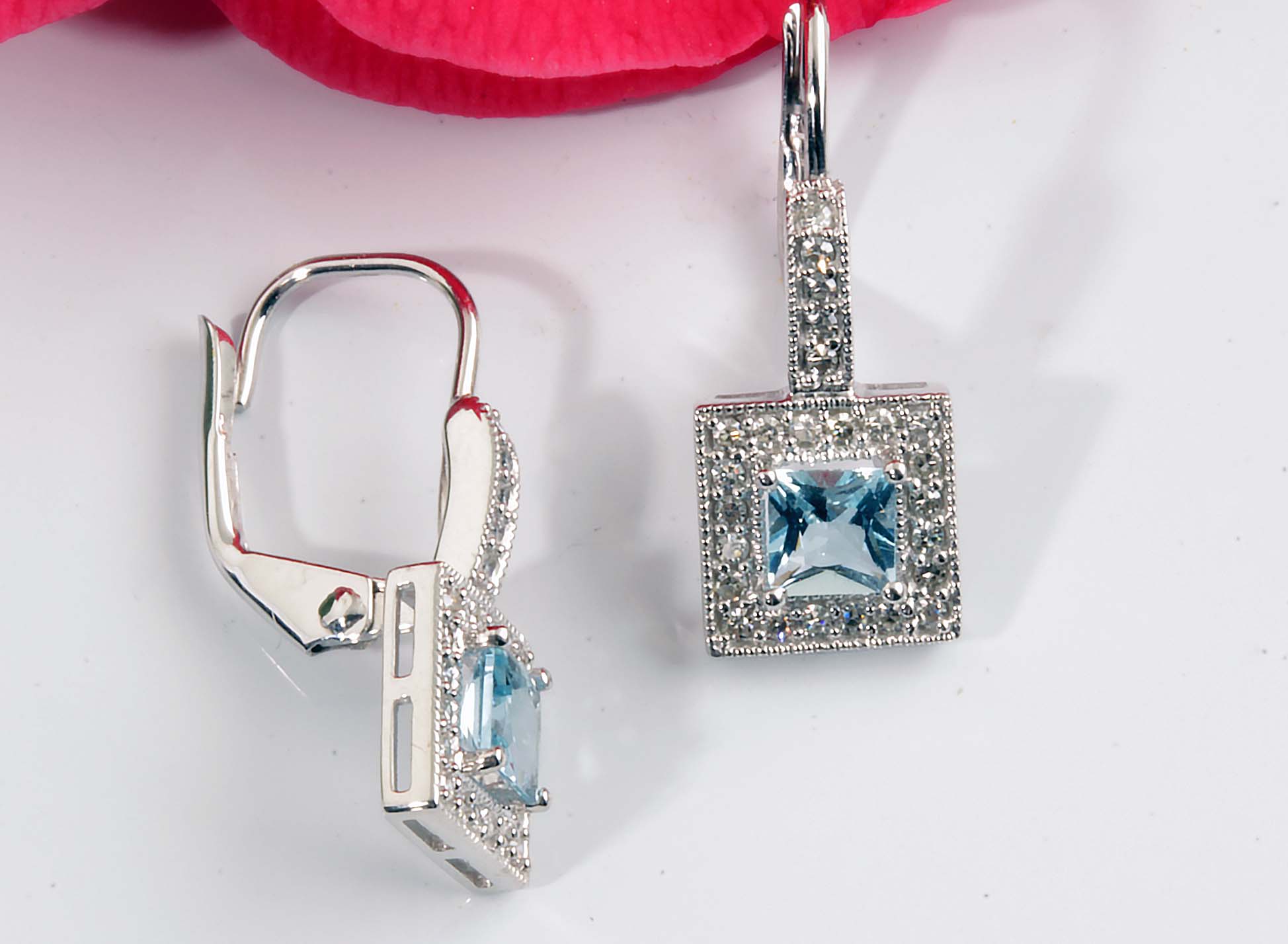 Aquamarine & Diamond Lever Back Earrings 14K WG #230-00043 .25tdw