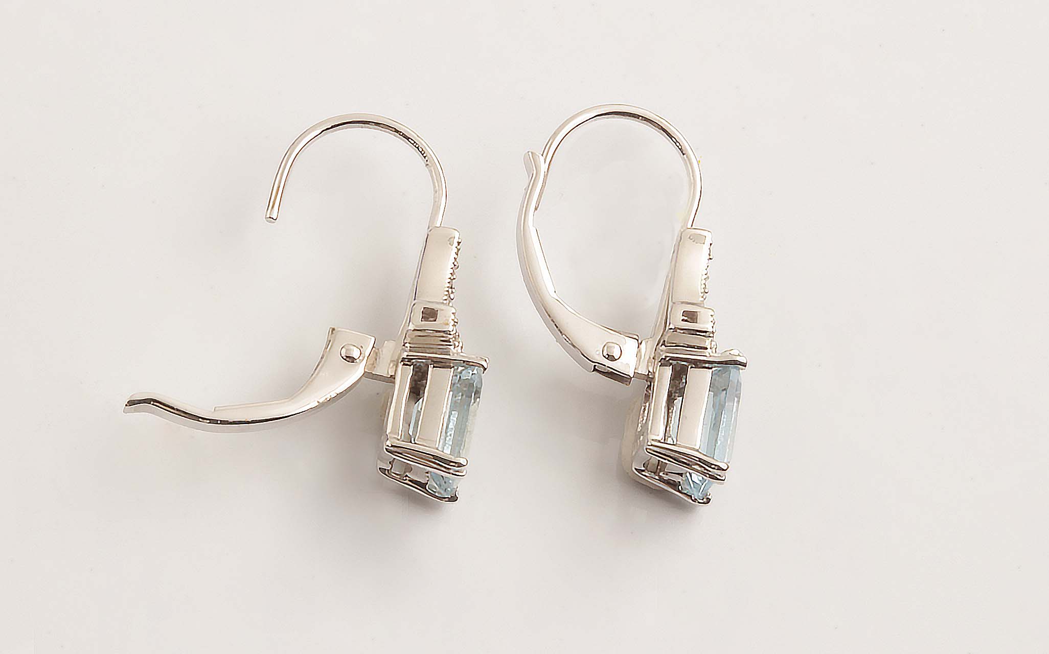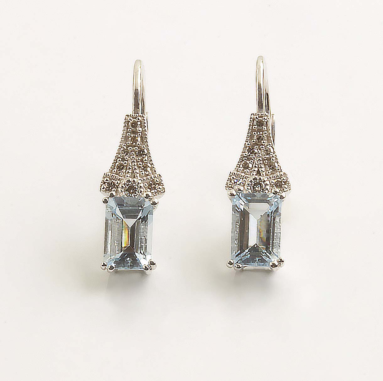 Aquamarine Earrings 14KWG w/Diamonds #210-00040 Leaver Backs .10 TDW 6/4 OC