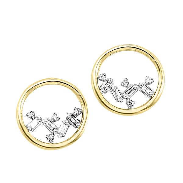 Baguette Diamond Circle Post Earrings 10MM in 14KYG #10694