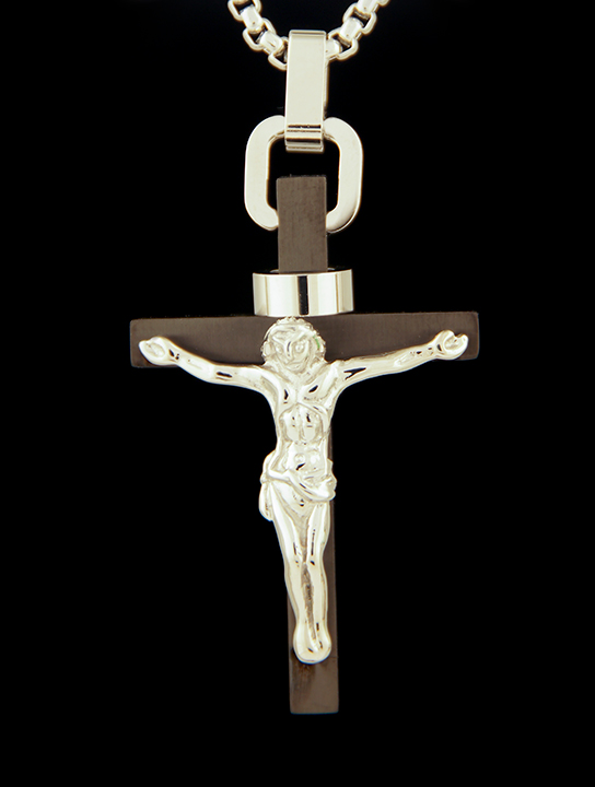 Black and Steel Jesus & Cross on a 22 Inch Box Chain – Stock# 9456