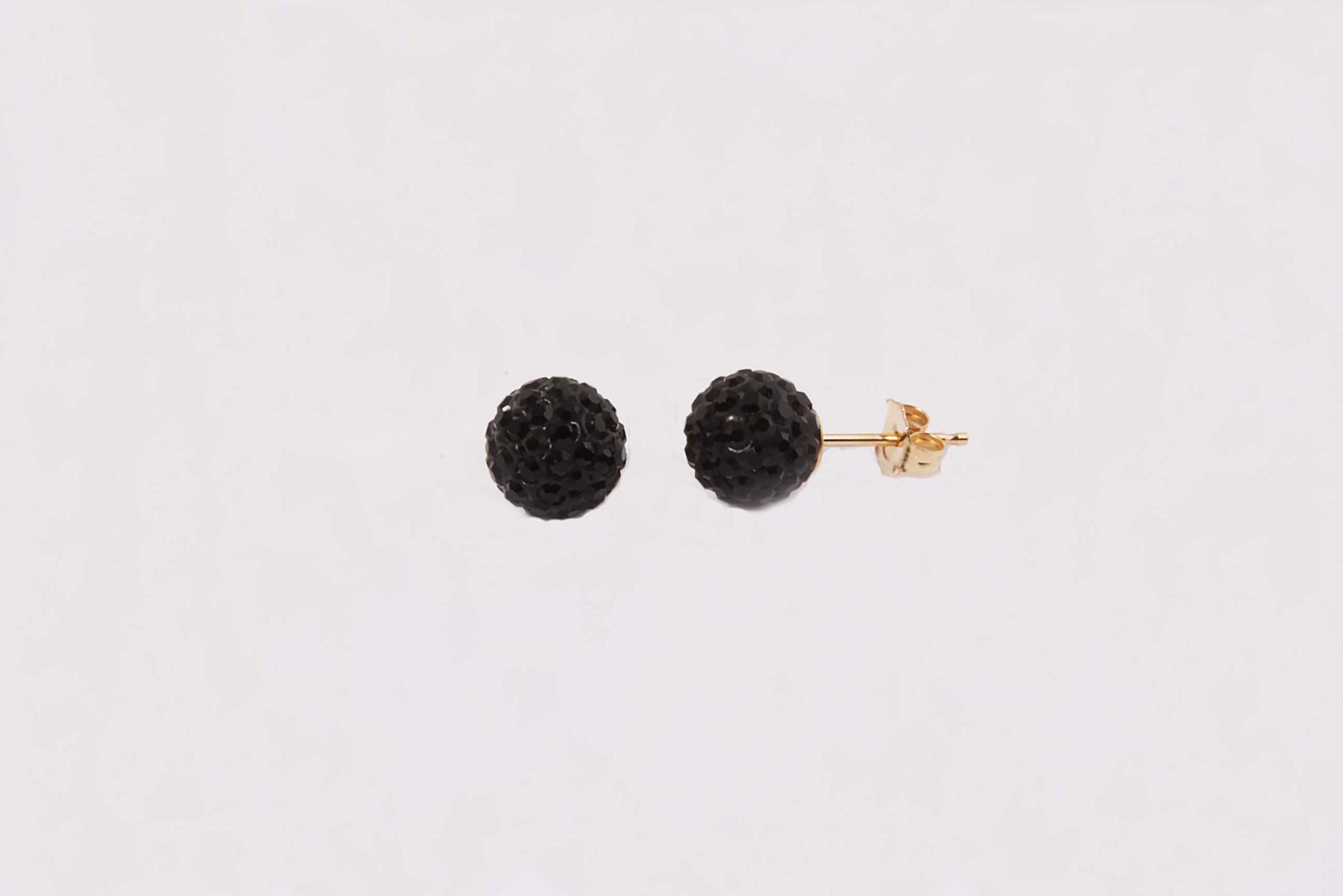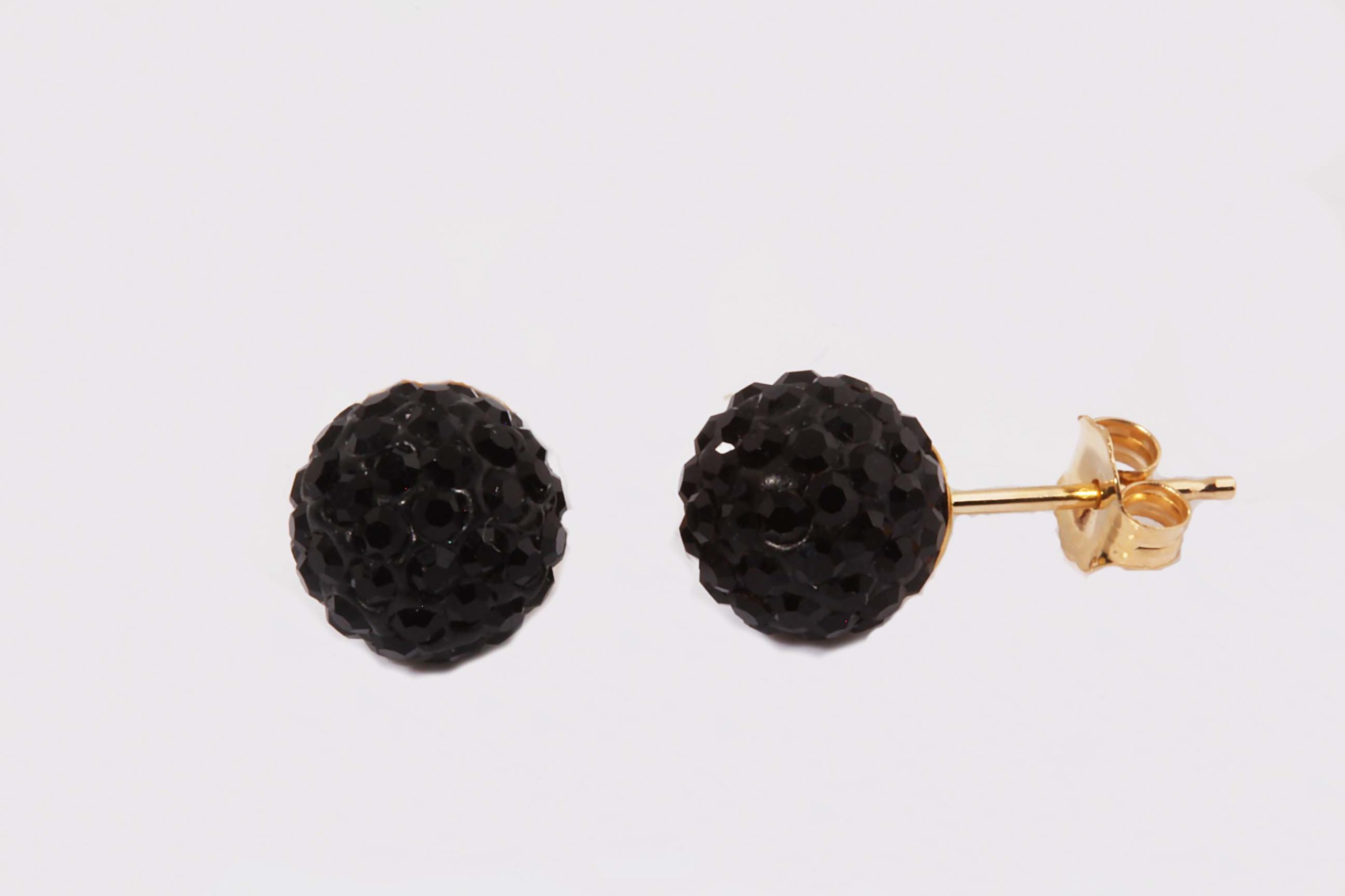 Black Crystal Ball Post Earrings 14K Yellow Gold – Stock# 7588