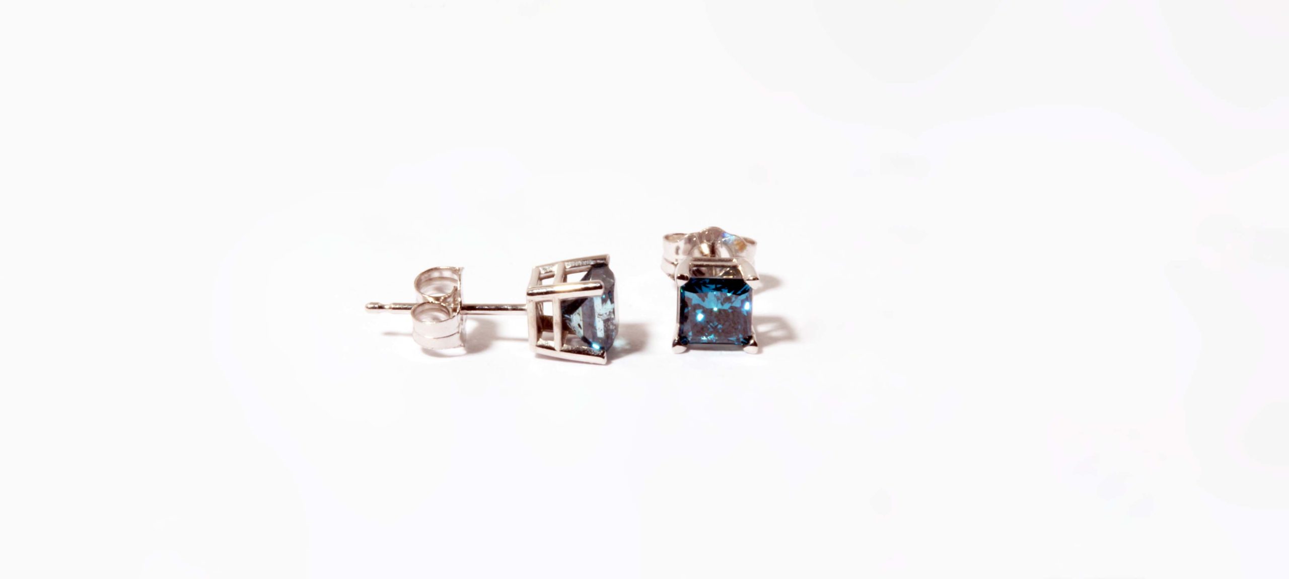 Blue Princess Cut Diamond Earrings 1.0ctw 10K White Gold – Stock# 160-00033
