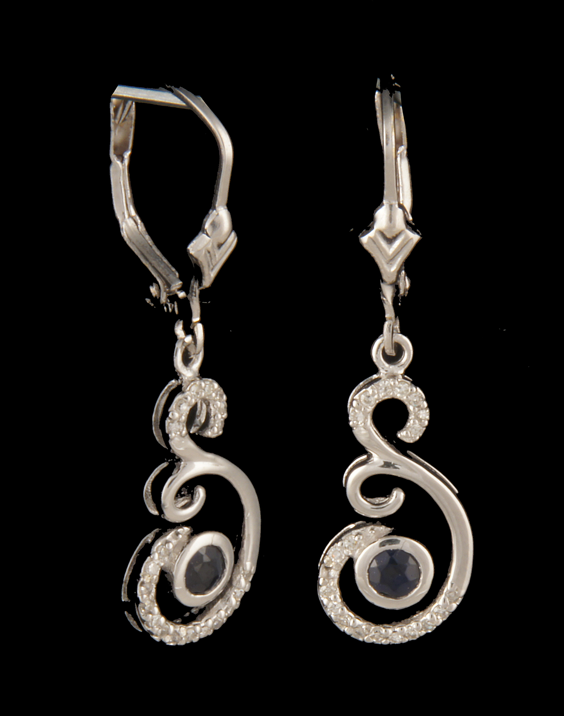 Blue Sapphire and Diamond Earrings 14K White Gold – Stock# 6370