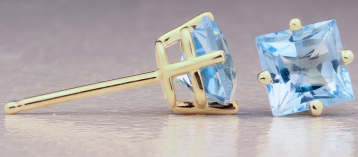 Blue Topaz 5mm Princess Cut Earrings in 14K Yellow Gold – Stock# 8422