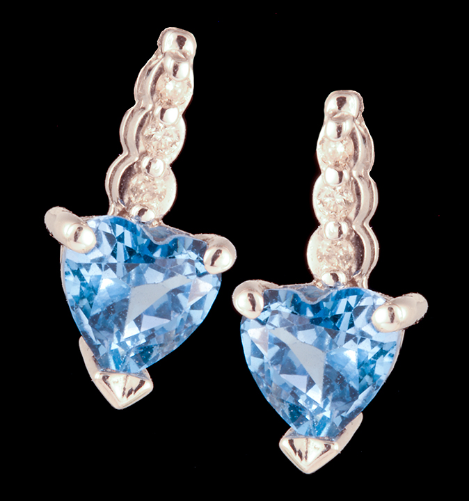 Blue Topaz and Diamond (0.03ctw) Drop Post Earrings in 14K White Gold – Stock # 9490