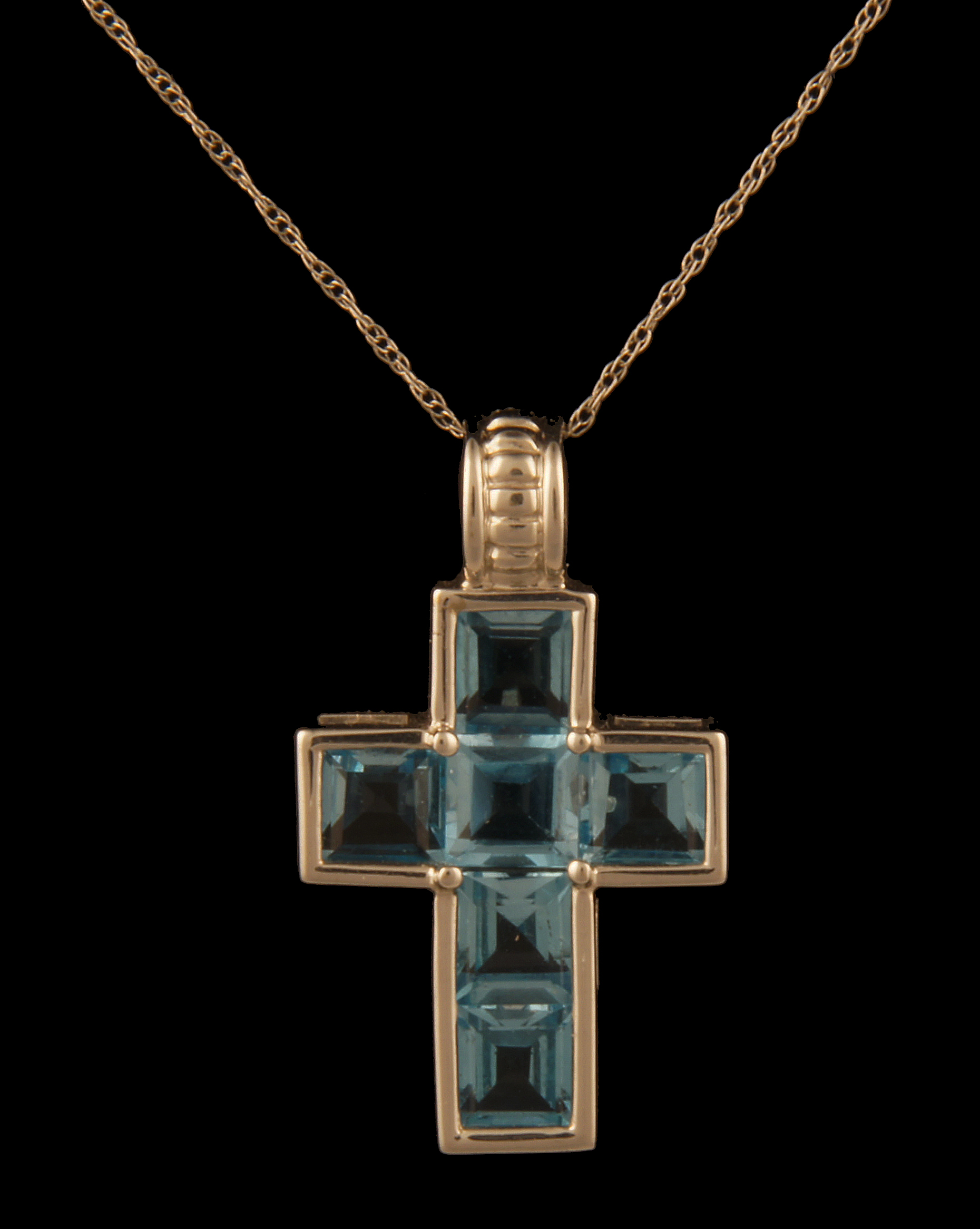 Blue Topaz Cross Pendant 4.0CT 14K White Gold – Stock# 4937