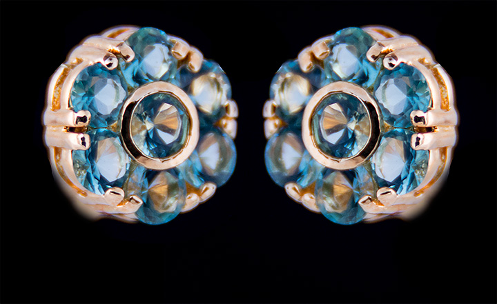Blue Topaz Flower Earrings in Gold Plated Sterling Silver – Stock# 8249