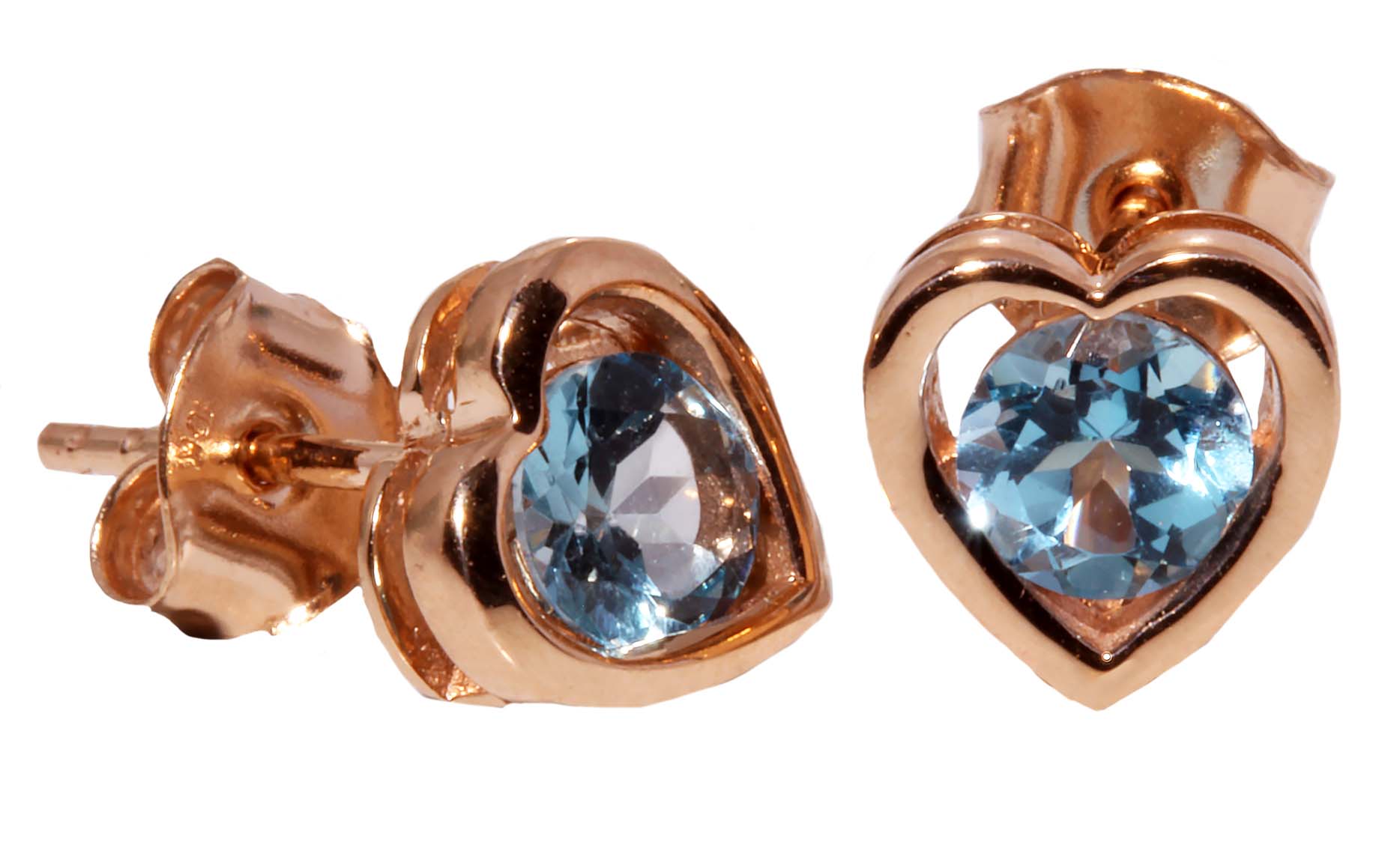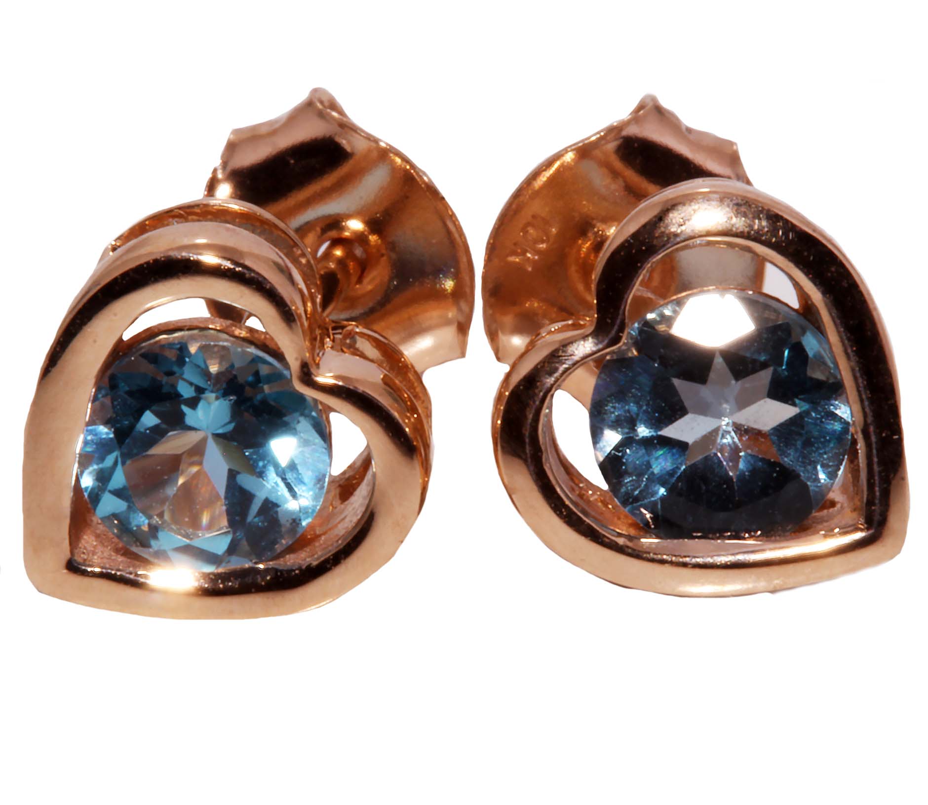 Blue Topaz Heart Stud Earrings in 14K Rose Gold -Stock#10874