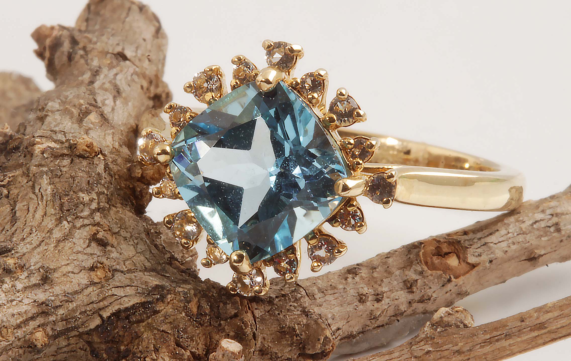 Blue Topaz & White Sapphire Ring 14KY #200-00040