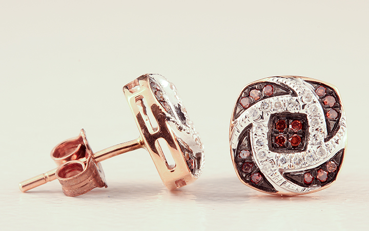 Brown and White Diamond (0.20ctw) Earrings in 10KP – Stock# 7500