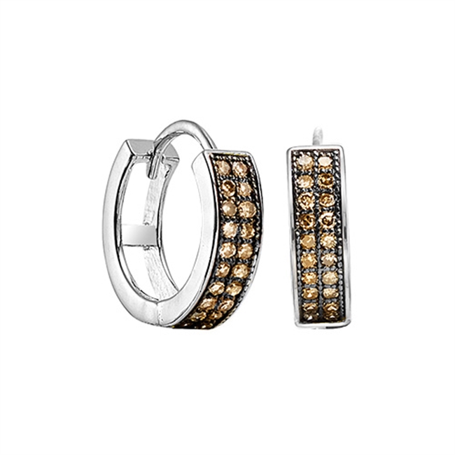 These Silver Diamond earrings feature 40 round-cut Dark Brown diamonds, totaling 1/5 ctw. Stock# 8028