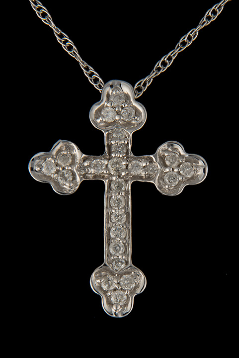 Budded Diamond (0.10ctw) Cross Pendant in 14K White Gold – Stock# 7700