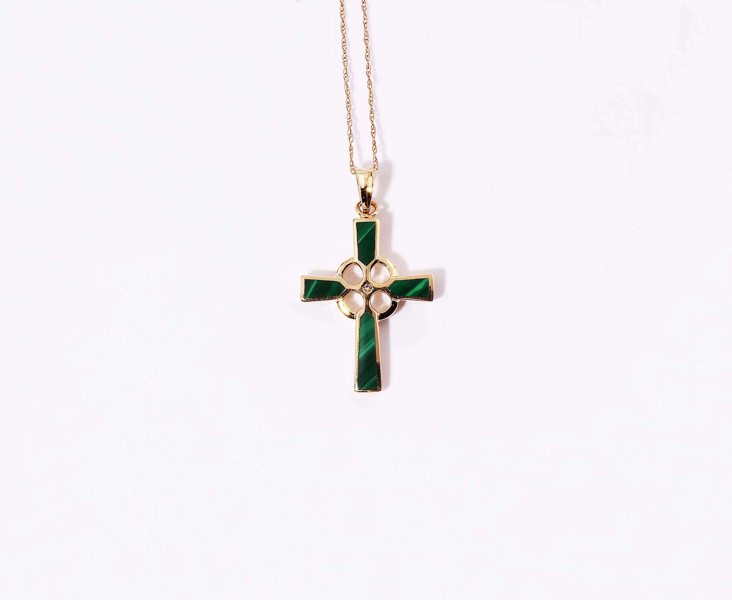 Celtic Cross with Inlaid Malachite .01TDW 28x22MM 14Y