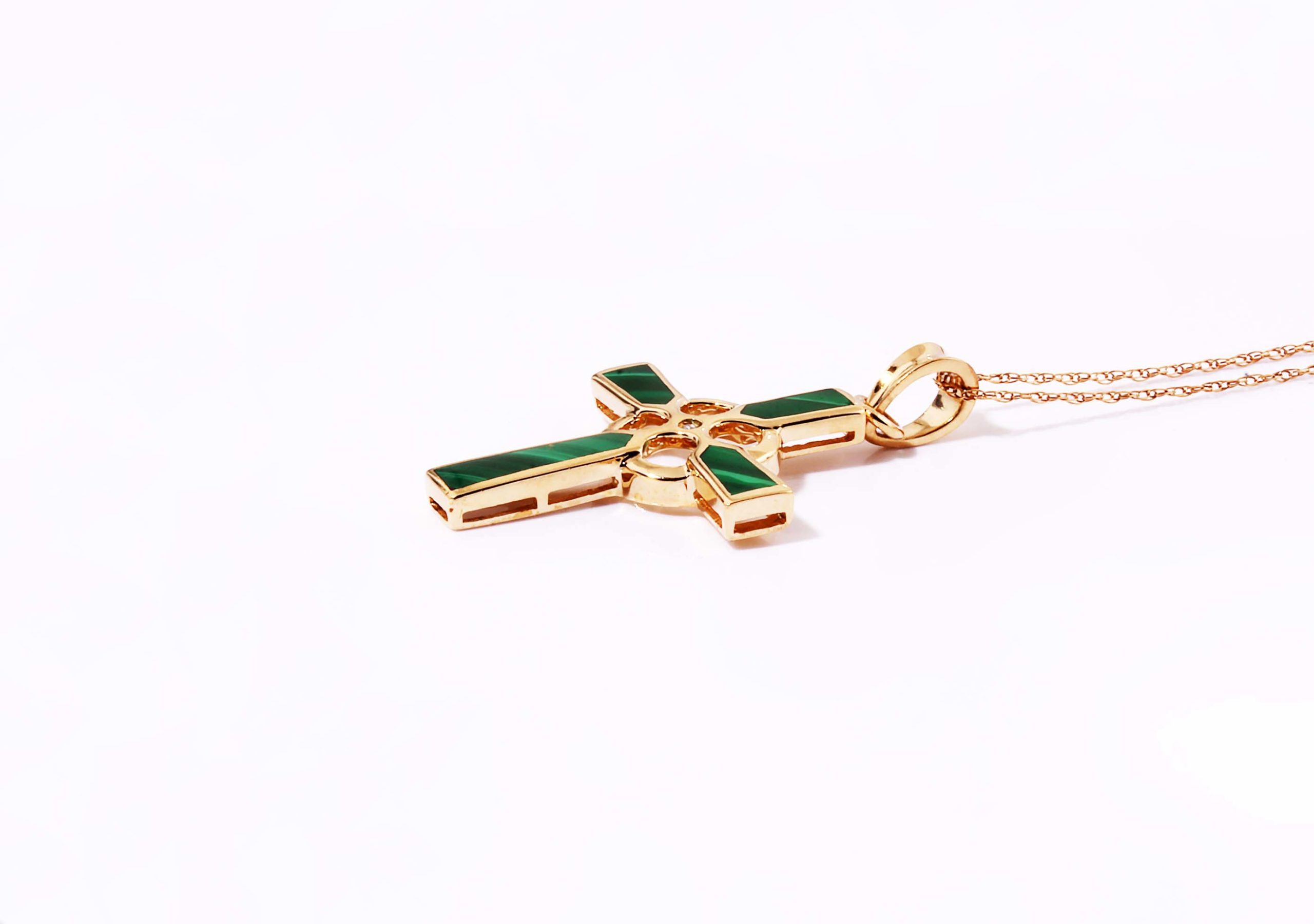 Celtic Cross with Inlaid Malachite .01TDW 28x22MM 14Y 10277