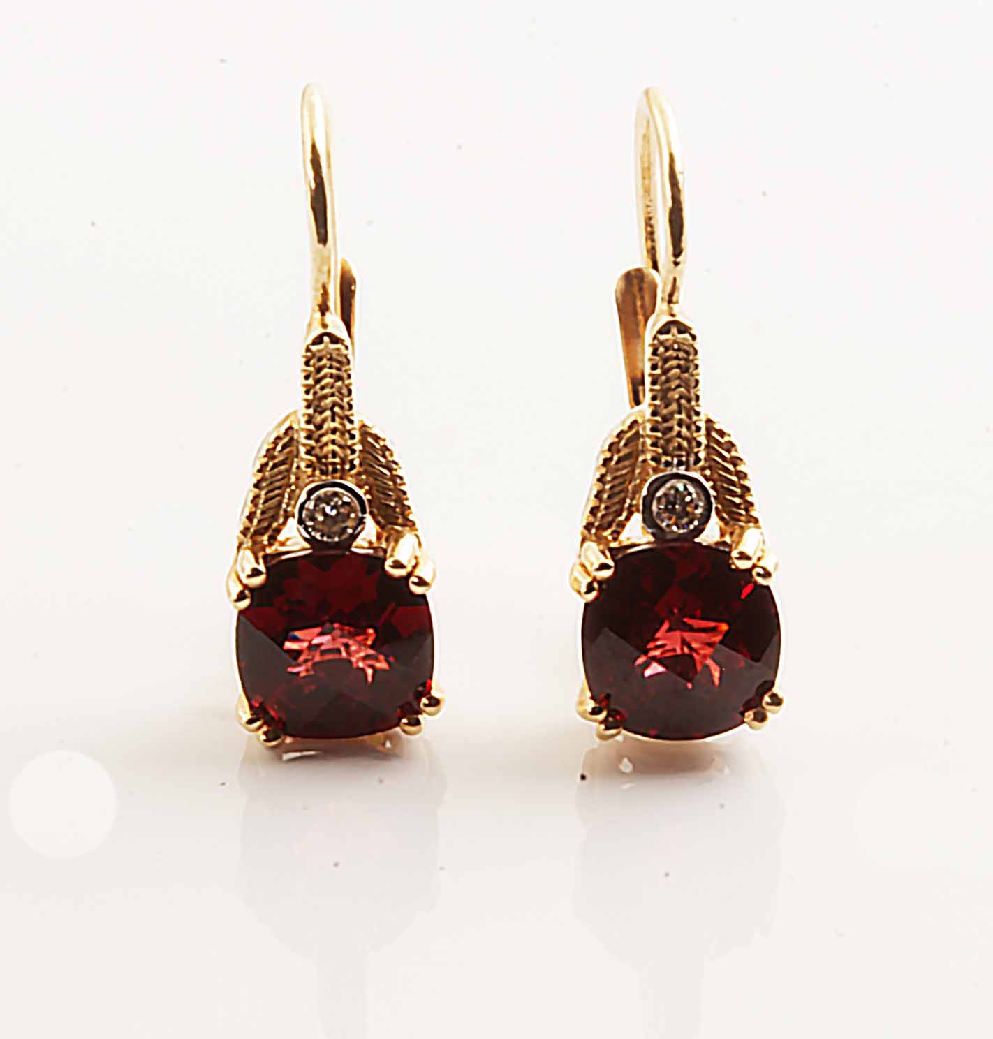 Checkerboard Cut Garnet Lever Back Earrings