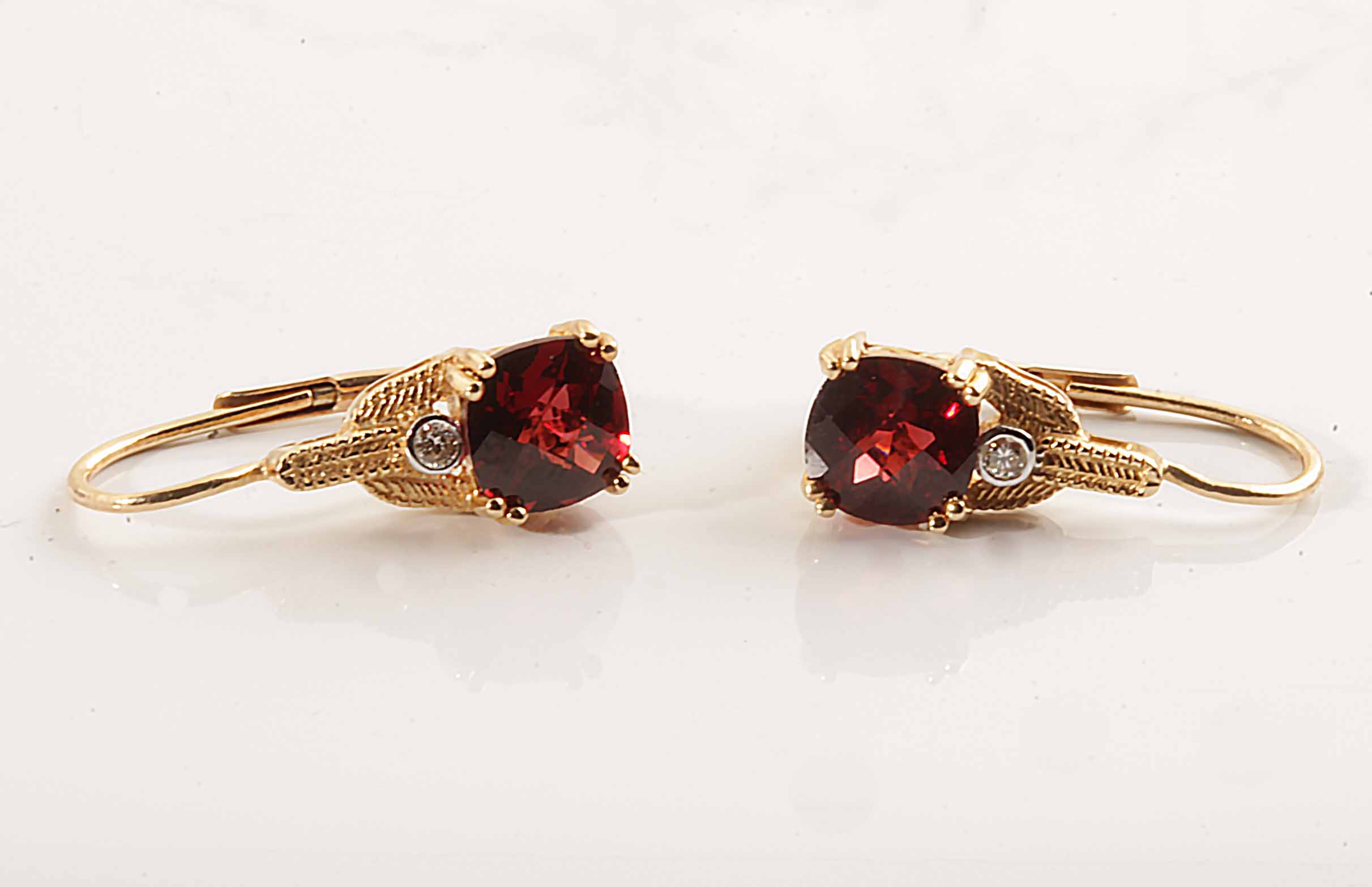 Checkerboard Cut Garnet Lever Back Earrings # 11587