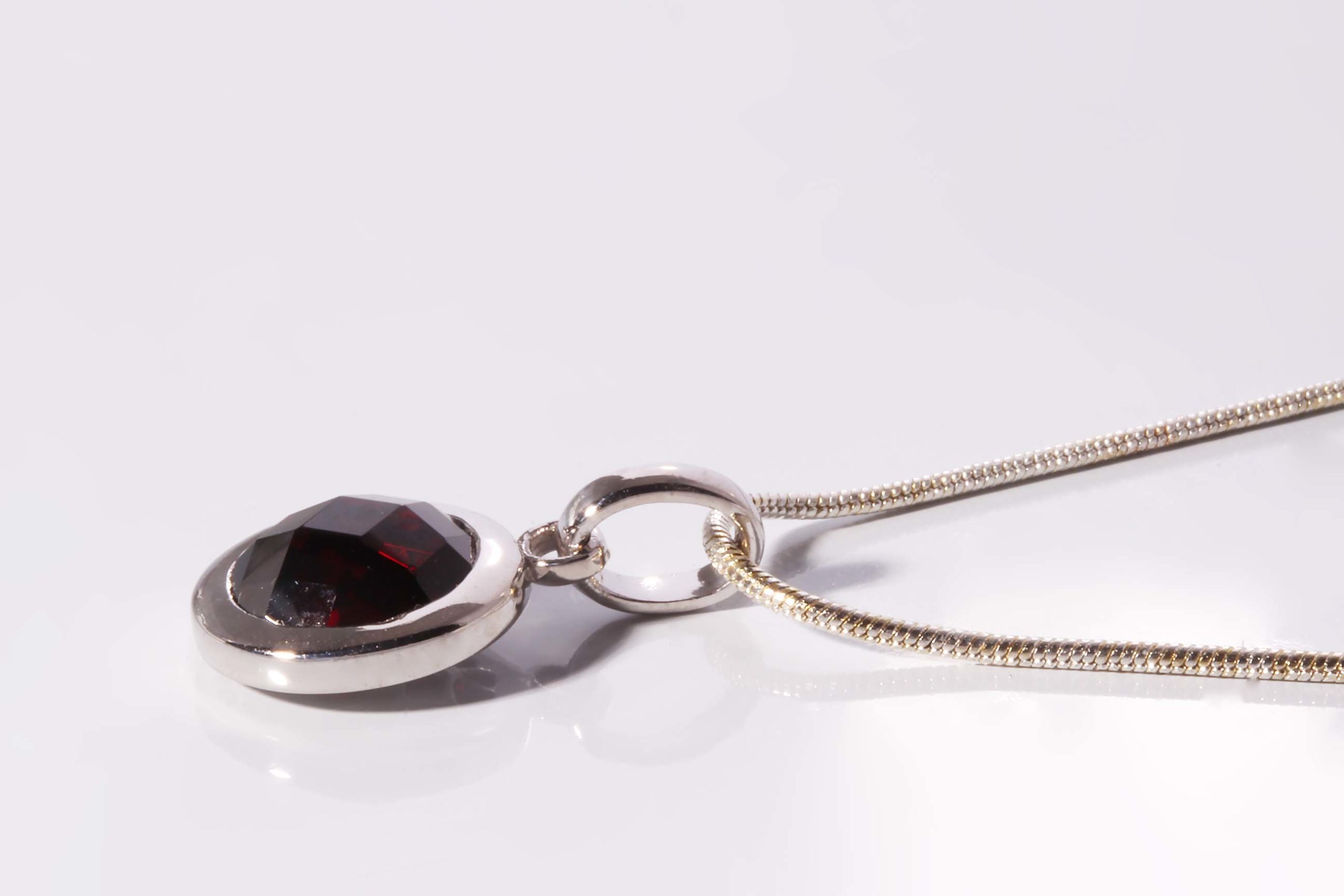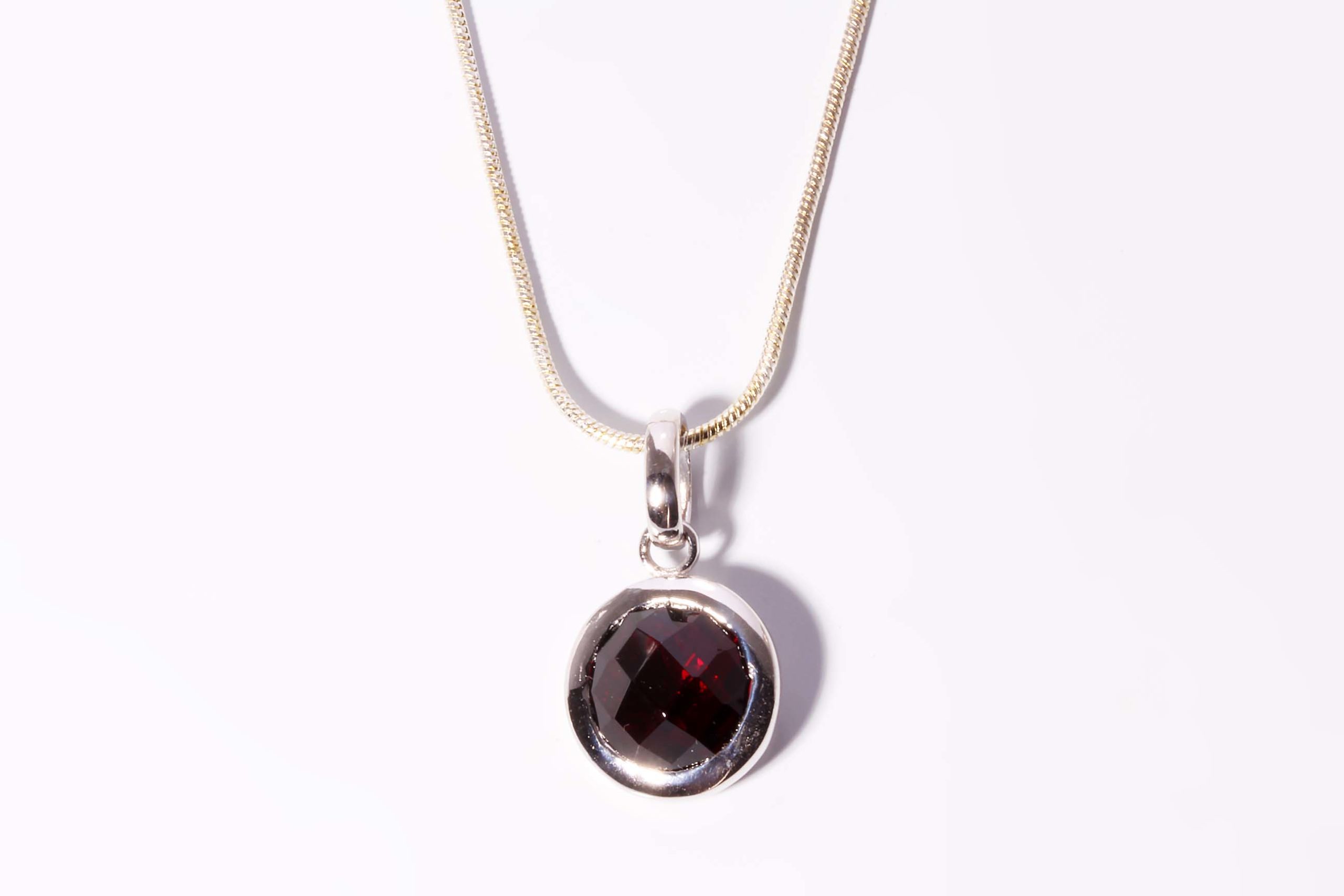 Checkerboard Round Garnet Necklace in Sterling Silver – Stock# 7989 23mm X 13mm