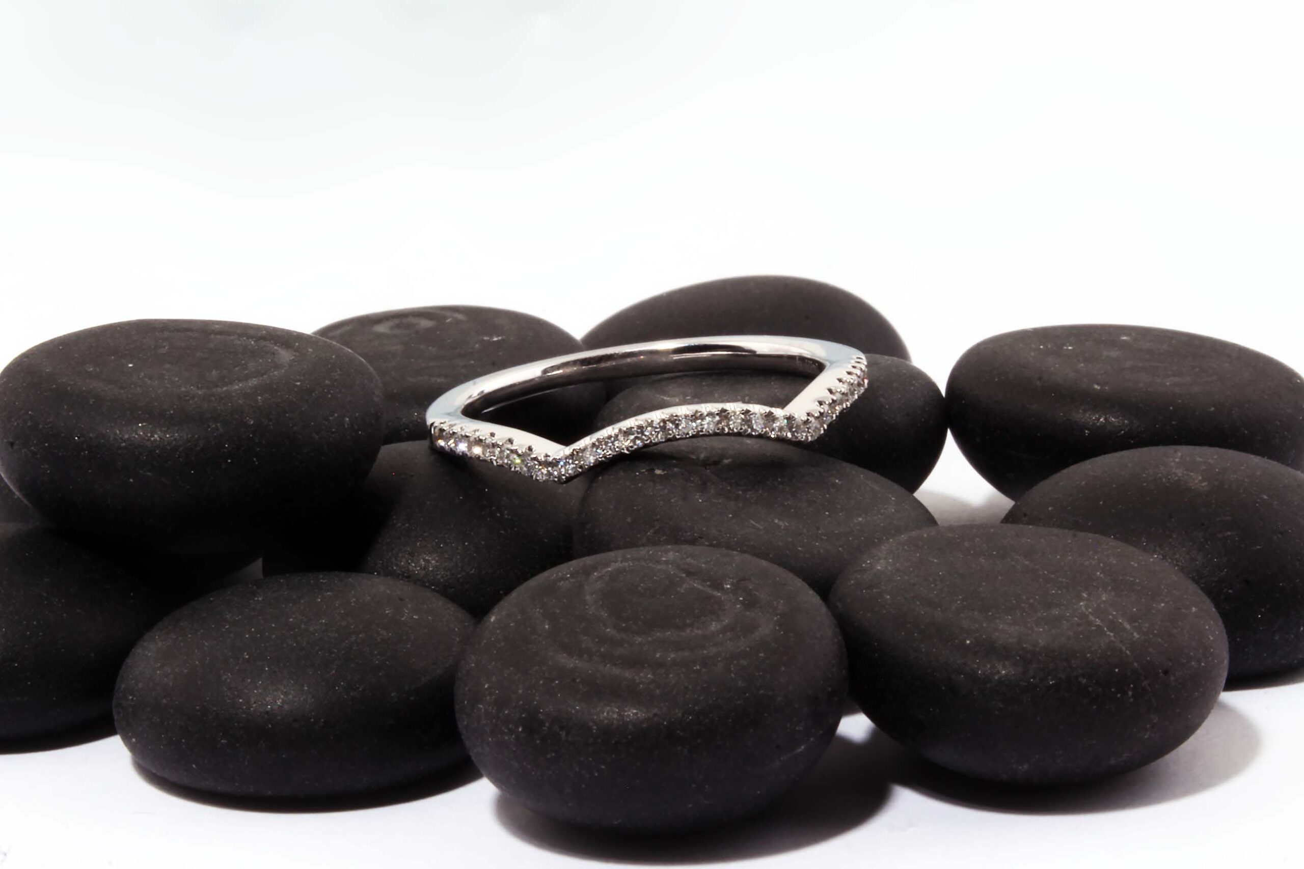 Contoured matching Diamond Wedding Band with .14 carats Diamonds -Stock #110-00001