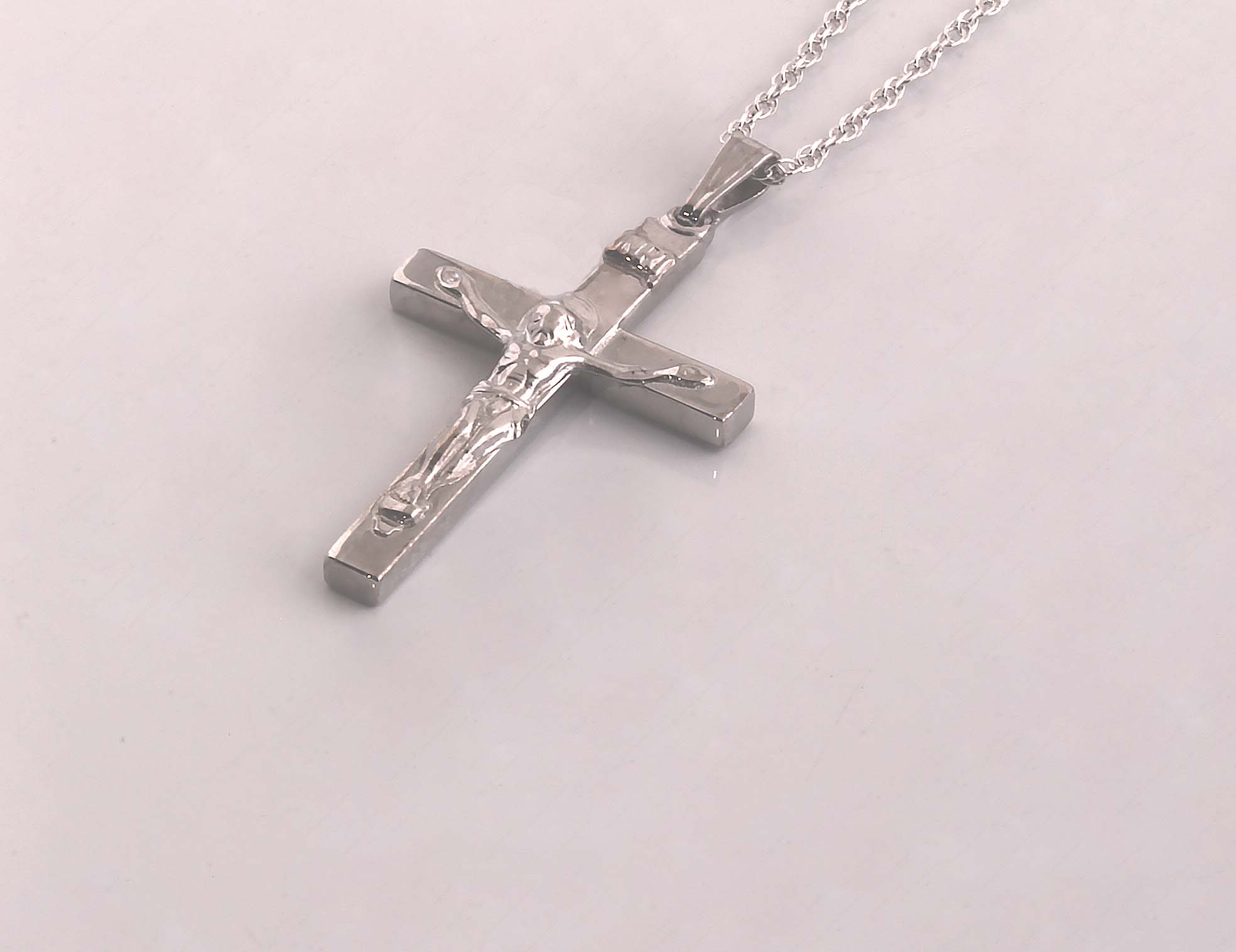Crucifix 28 x 17MM in Sterling Silver on 17 inch Sterling Rope Chain #10398