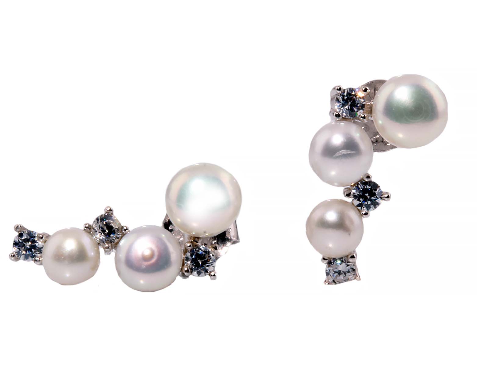 CZ and Pearl Ear Climber Stud Earrings in Sterling Silver -Stock#10791