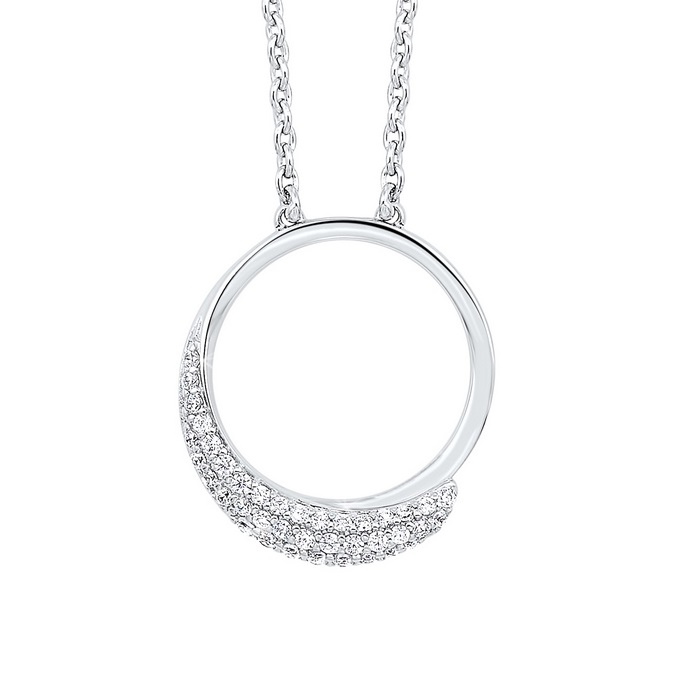 Cubic Zirconia Pave Bottom Circle Pendant in Sterling Silver -Stock#10704