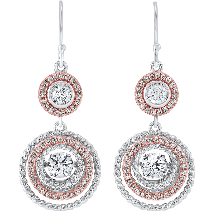 Cubic Zirconia Rhythm of Love Rope Circles and Rose Gold Plated Two-Tone Earrings -Stock#10718