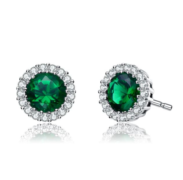 Cubic Zirconia Sterling Silver Round Green CZ Studs -Stock# 9319