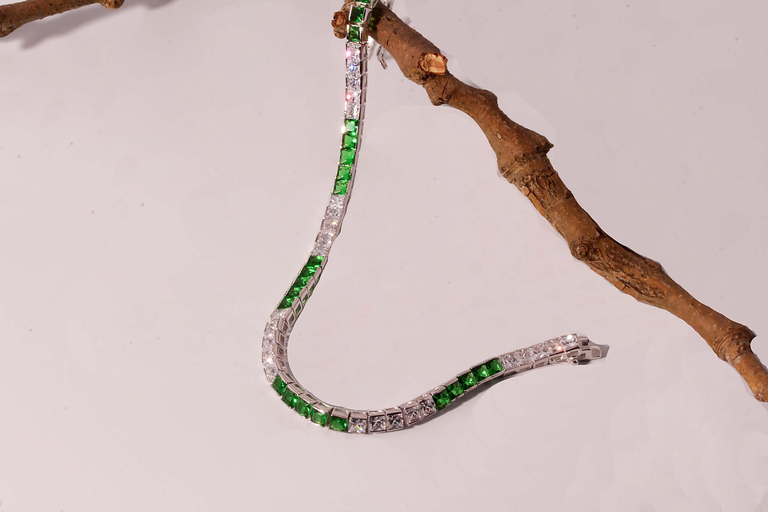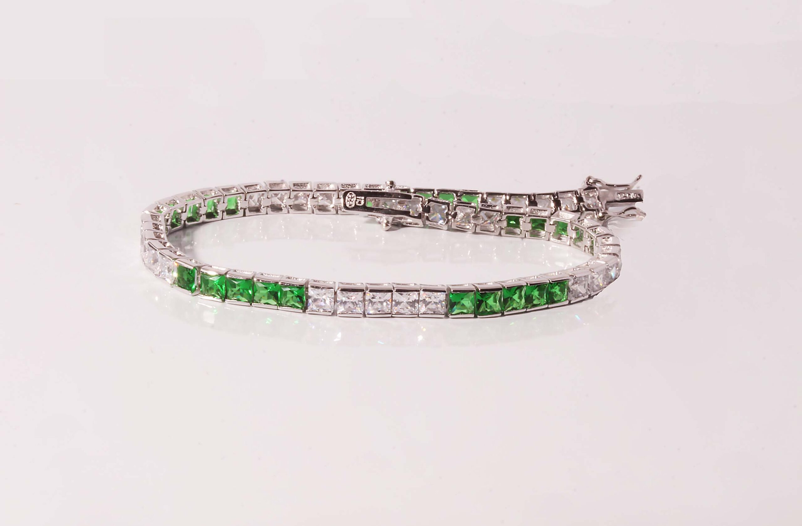 White and Green Cubic Zirconium Tennis Bracelet in Sterling Silver – Stock# 8237