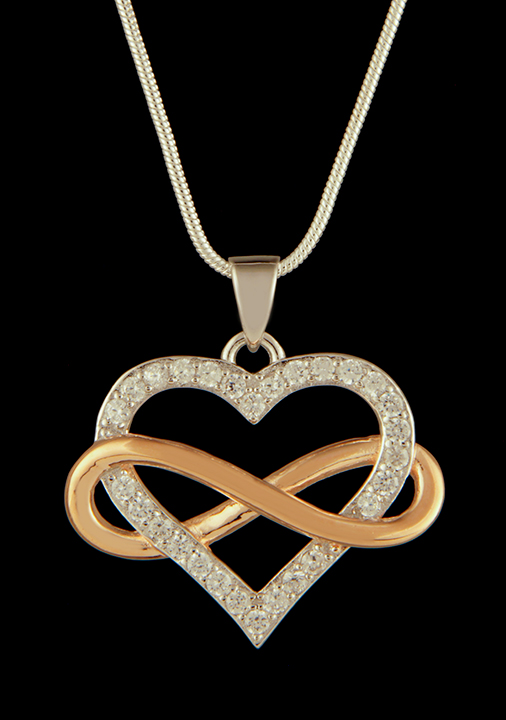 Cubic Zirconium Infinity Heart Pendant in Two Tone Sterling Silver – Stock# 9344