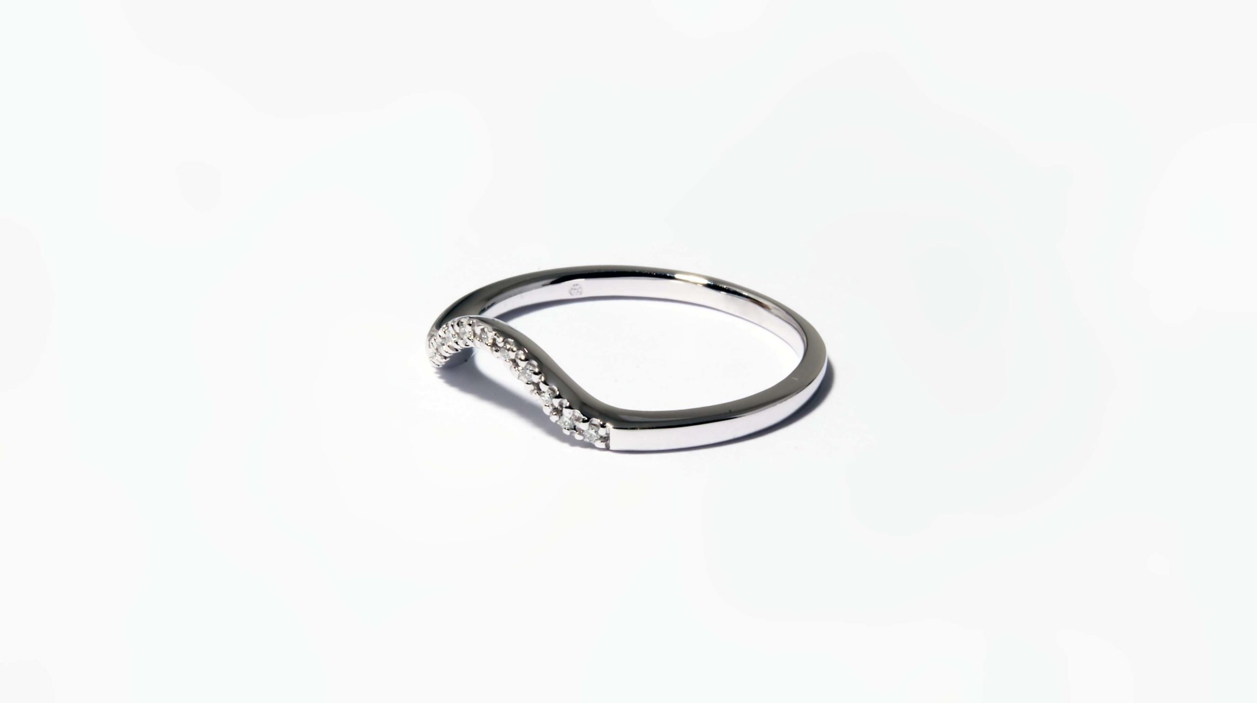 Curved Diamond (0.04ctw) Wedding Band in 14K White Gold – Stock# 8511 Band width: 2mm