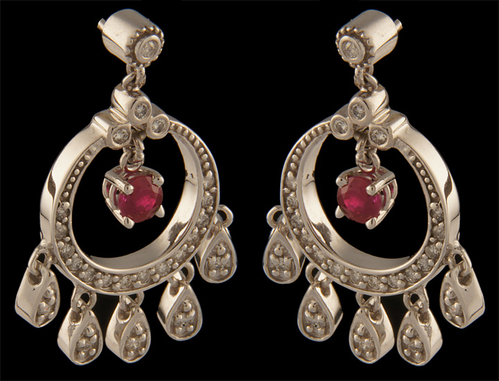 Custom Dangle Ruby and Diamond Chandeleir Earrings in 14K White Gold – Stock# 6402