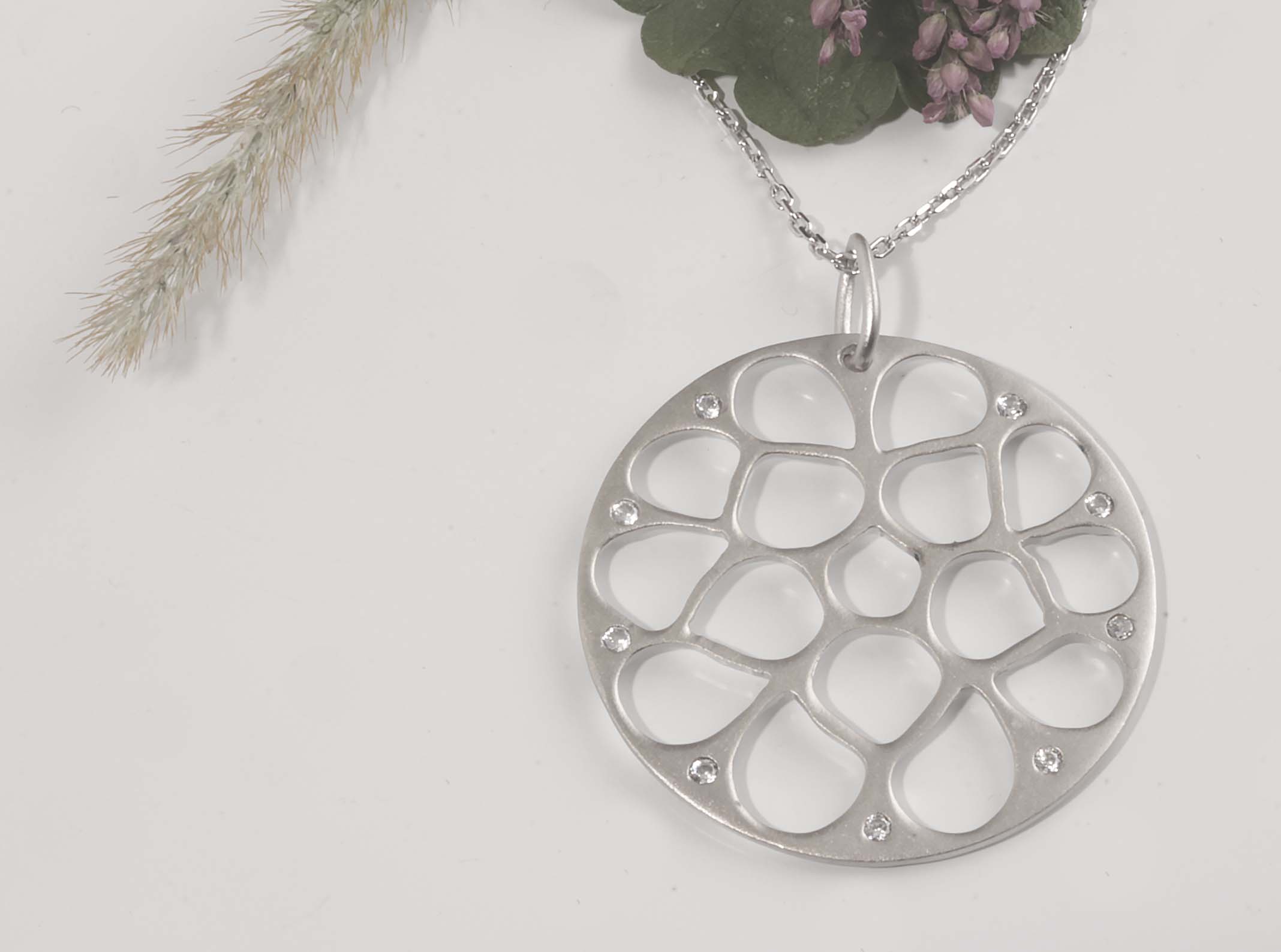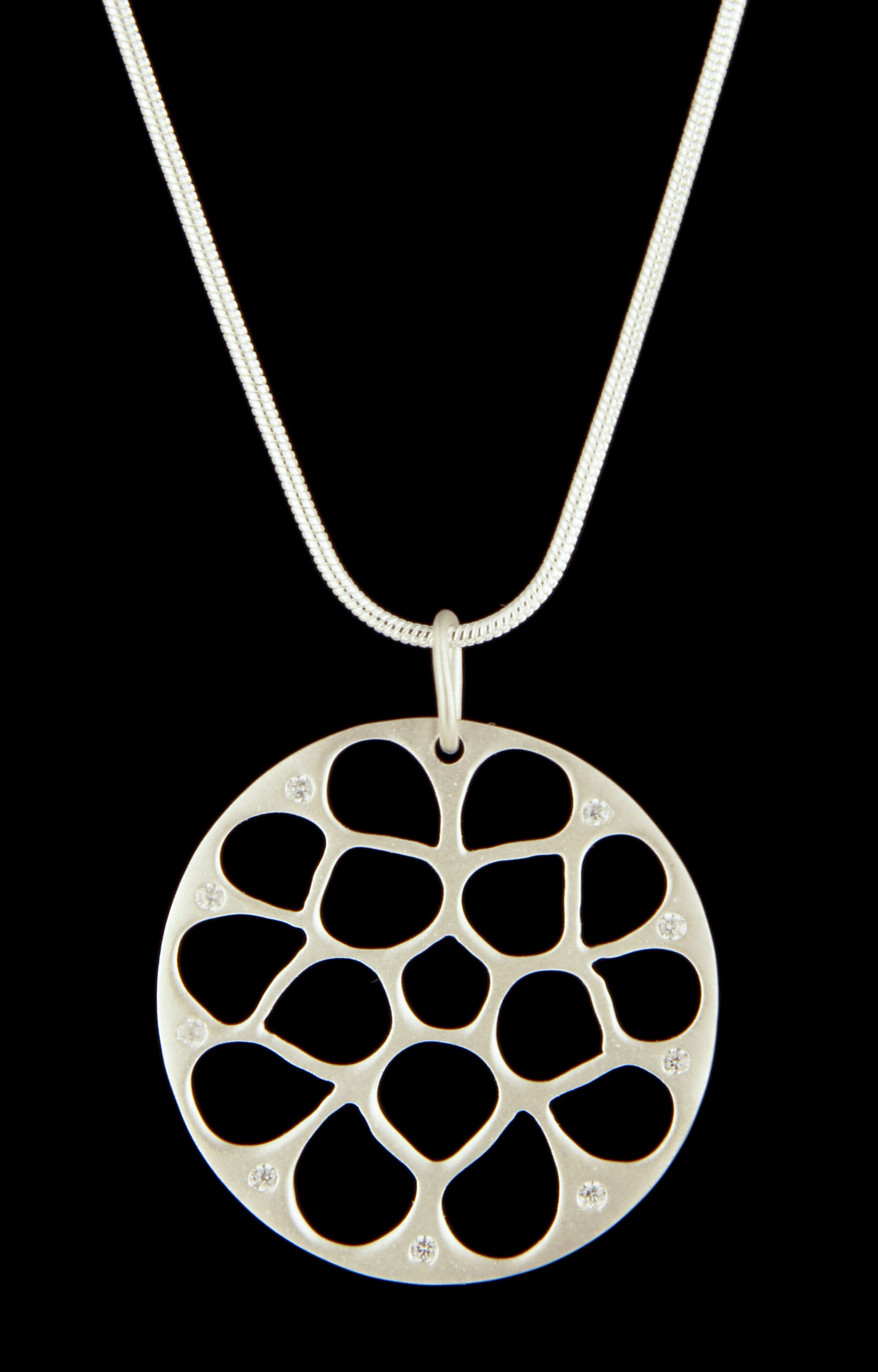 Sterling Silver 30mm Matte Finish Round Web w/ Burnished CZ Edge Pendant – Stock# 9347