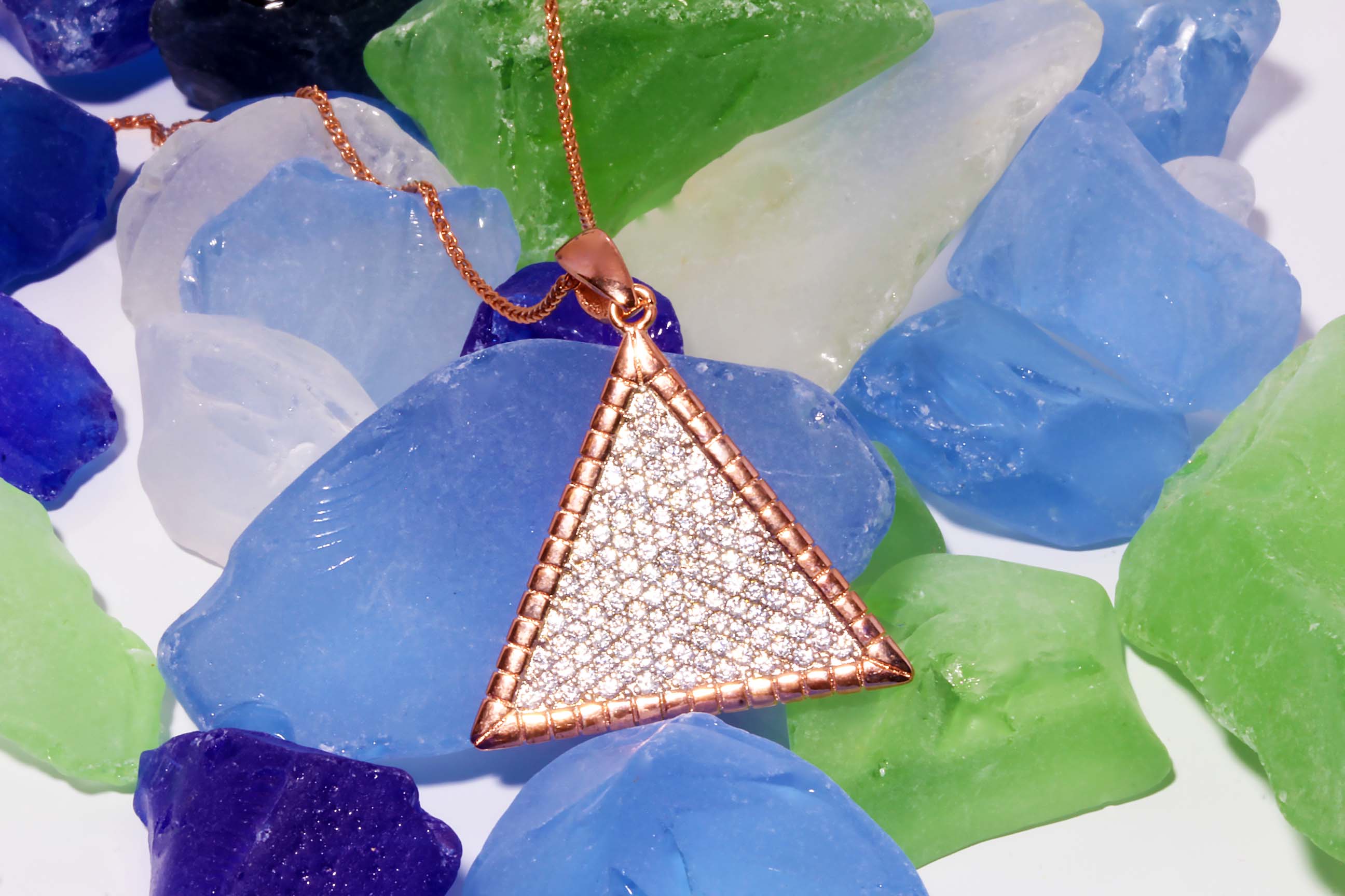 CZ Triangle Rose Pendant in Sterling Silver -Stock# 9346