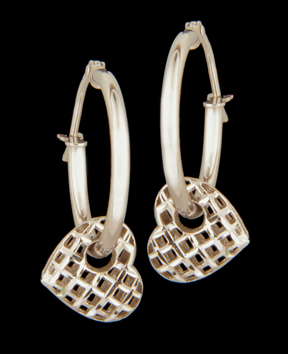 Dangling Heart Hoop Earrings Made of 14K White Gold – Stock# 8417