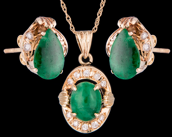 Dark Green Jade Earring and Pendant Set in 14K Yellow Gold – Stock# 8297