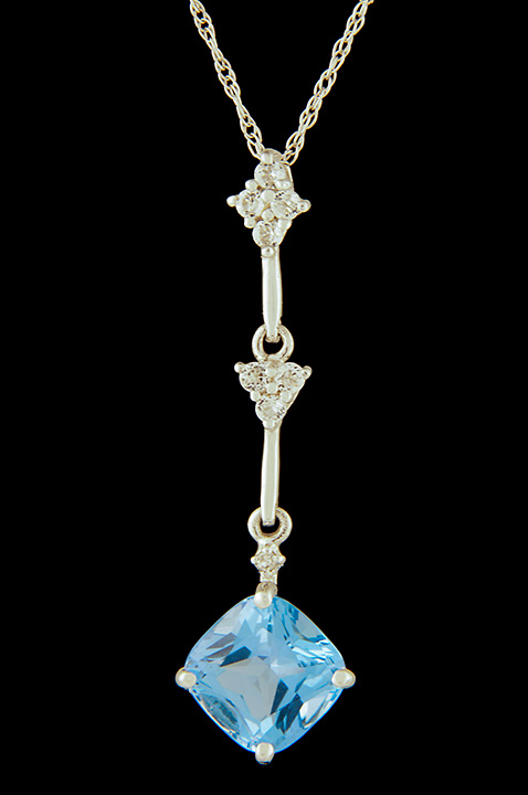 Diamond (0.01ctw) and Blue Topaz Dangle Pendant in 14K White Gold – Stock# 9083